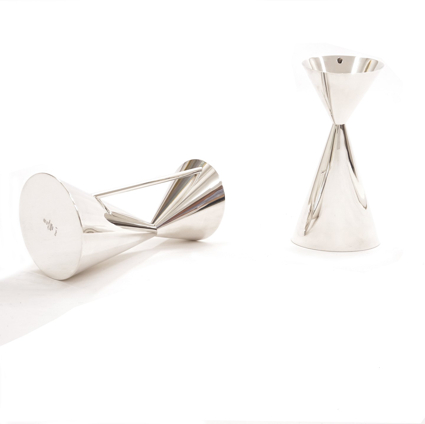 A very rare pair of Hans Hansen Denmark sterlingsilver pitchers. #589. Signed and dated 1985. H: 20,5cm. W: 781gr