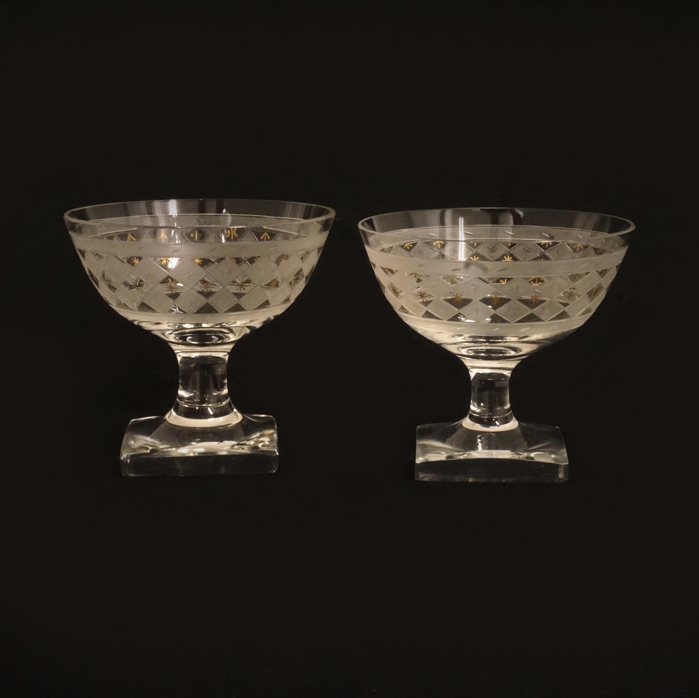 Sæt på 10 champagneskåle med delvist forgyldt harlekinmønster. Ca. år 1900. H: 9,6cm
