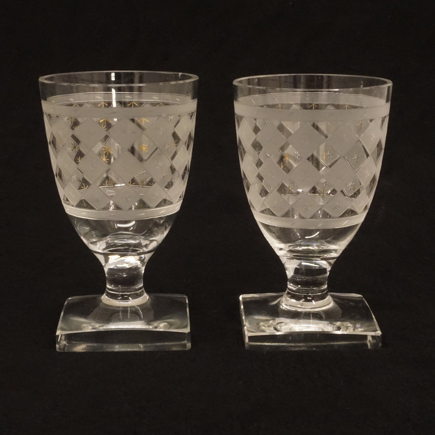 A set of four wine glasses. Circa 1900. H: 12,4cm