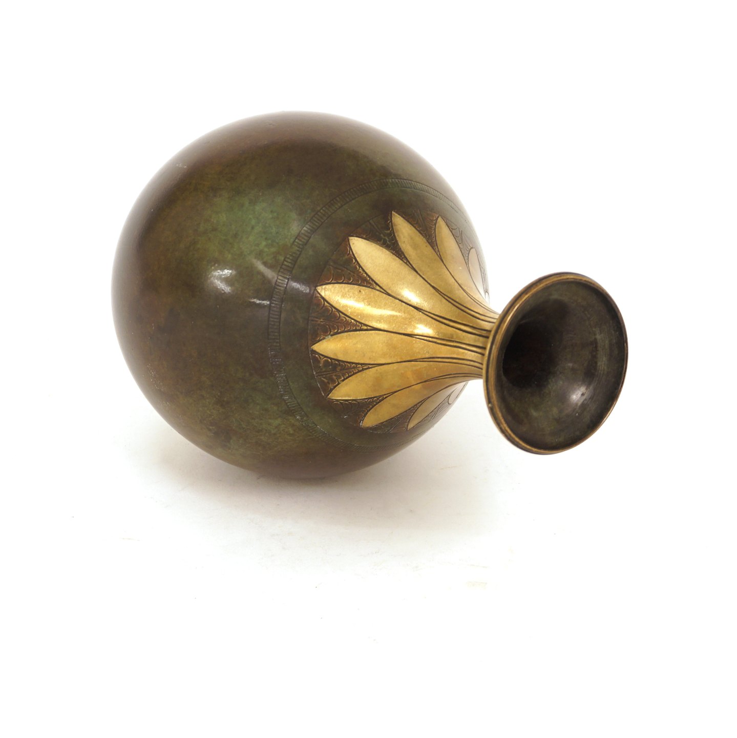Just Andersen vase i delvist patineret og poleret bronze. #73. H: 21cm