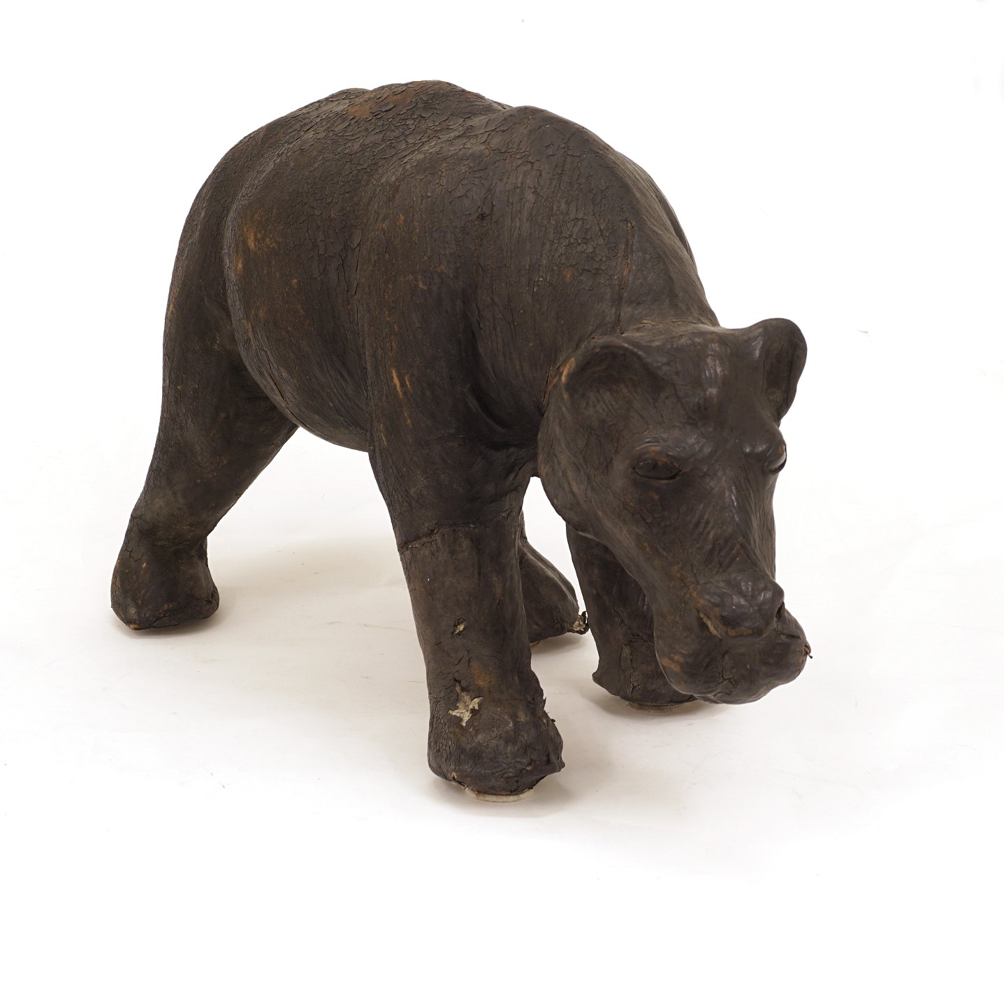 A large leather hippopotamus. In the manner of Dimitri Omersa. H: 35cm. L: 65cm. W: 22cm