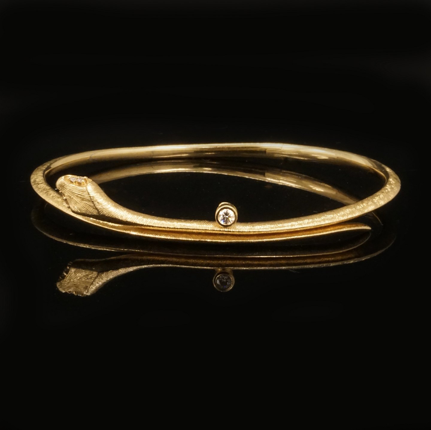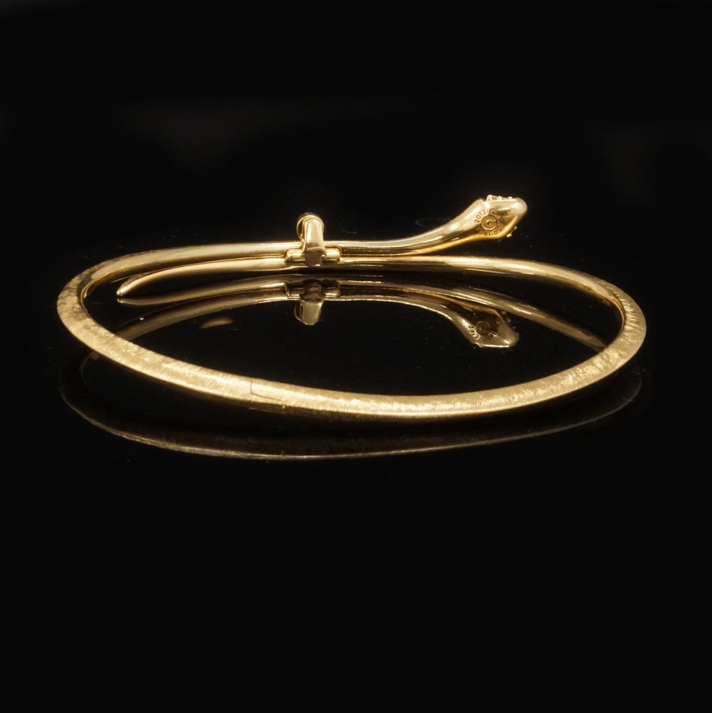 Ole Lynggaard Snakes armring. Oplukkelig oval armring i 18kt guld prydet med i alt 5 brillanter på i alt ca. 0,06ct. Stemplet Ole Lynggaard. Indvendige mål: 5,9x4,8cm