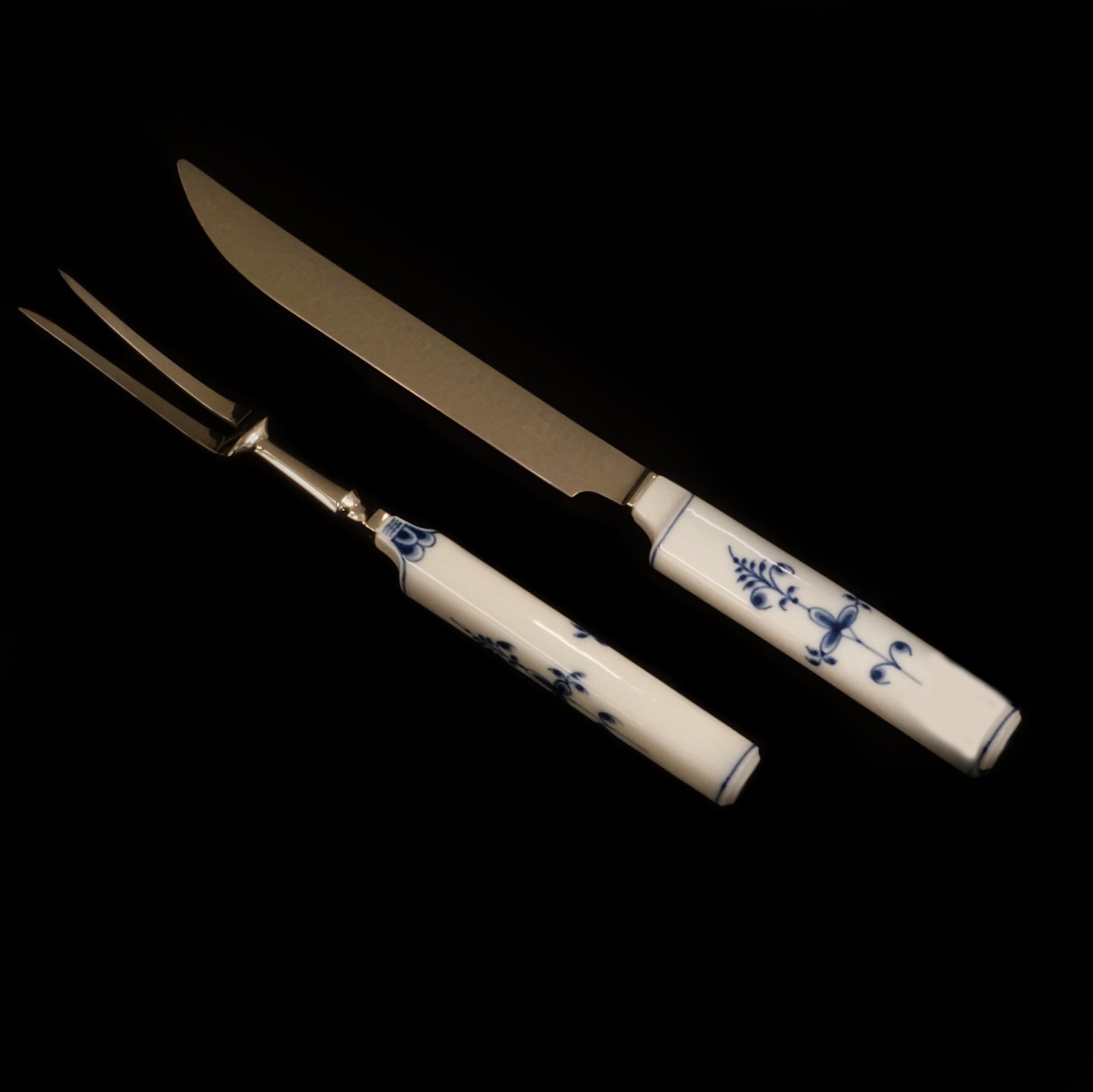Royal Copenhagen blue fluted precutter set. Knife L: 35cm