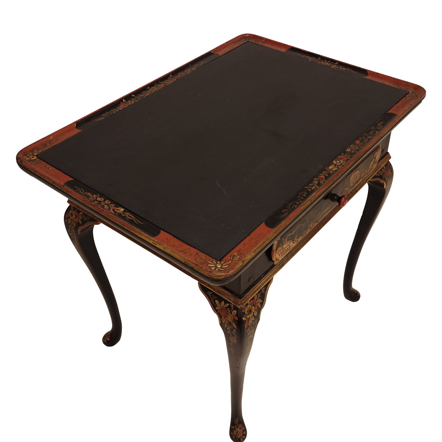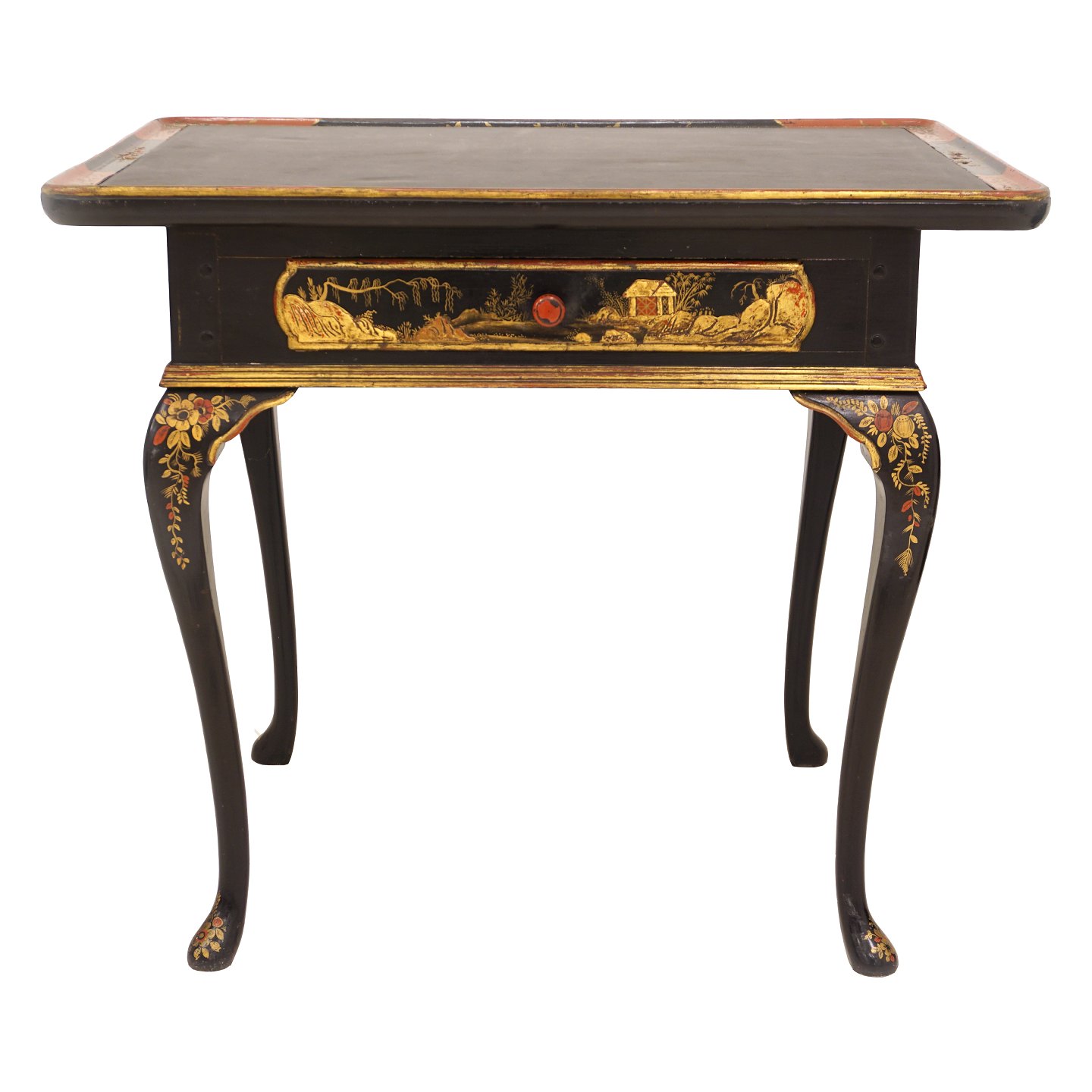 Sortlakeret rokokobord med forgyldte kineserier og senere skiferplade