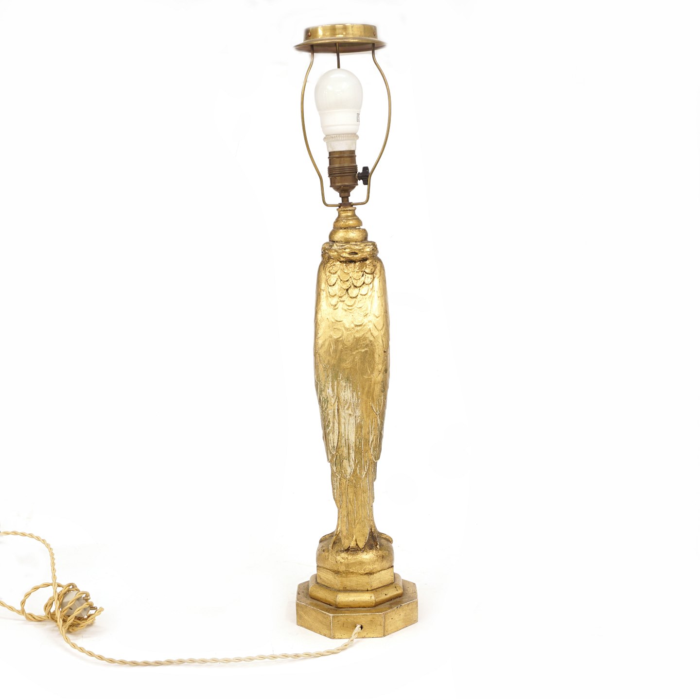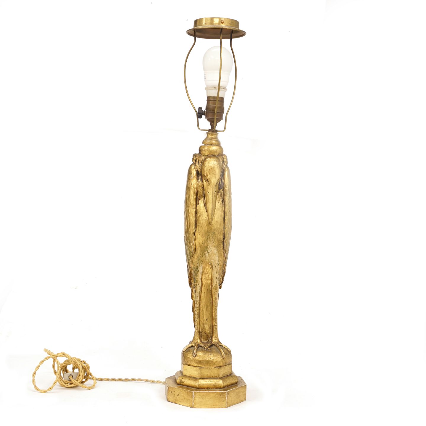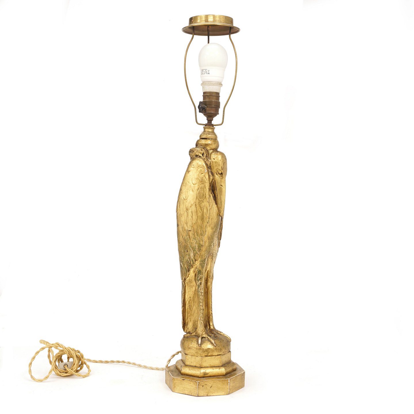 A woodcut and gilt Malibu stork table lamp Denmark circa 1920 H: 75cm Item number: 33799