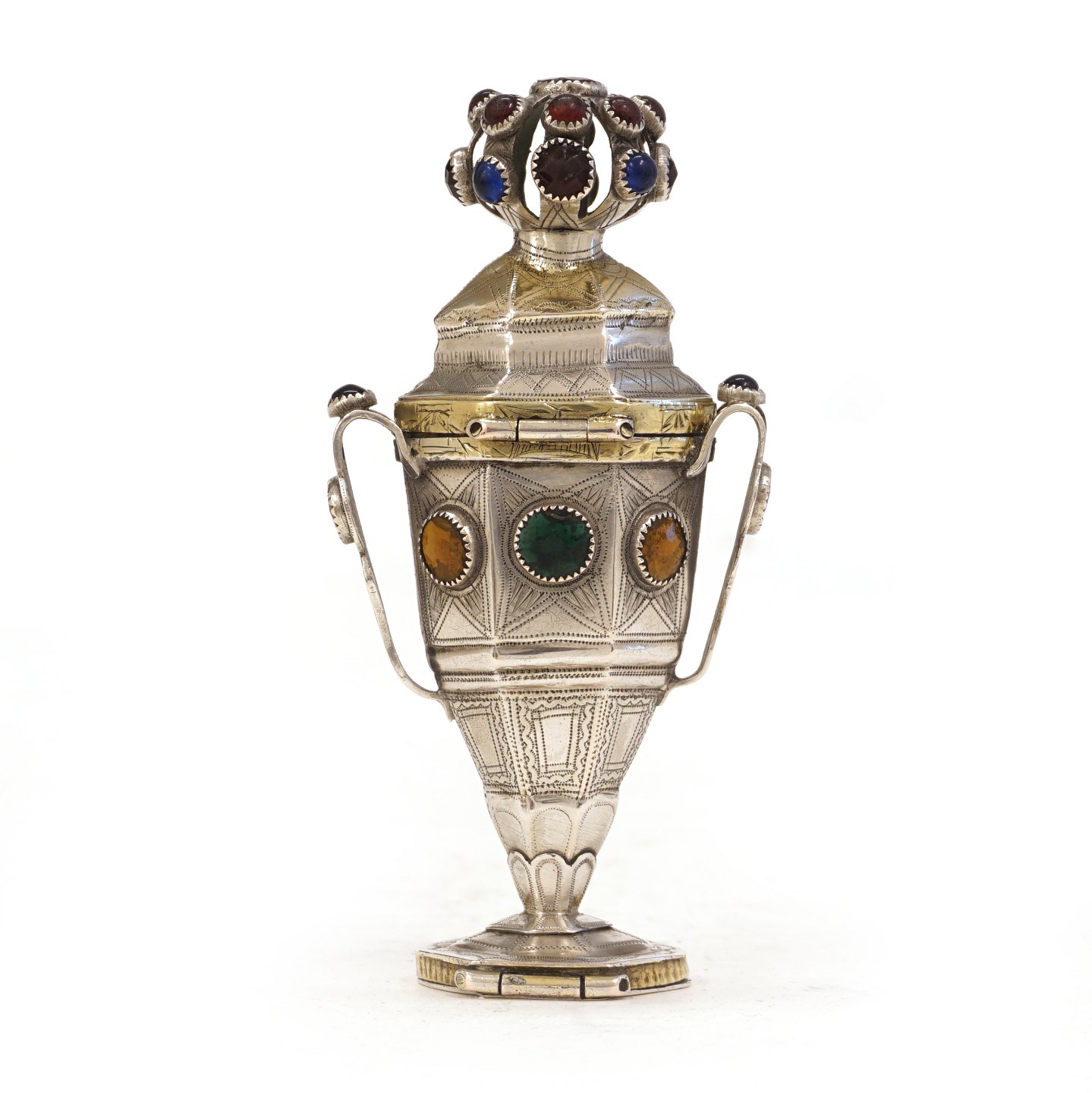 Hovedvandsæg i delvist forgyldt sølv prydet med flusser