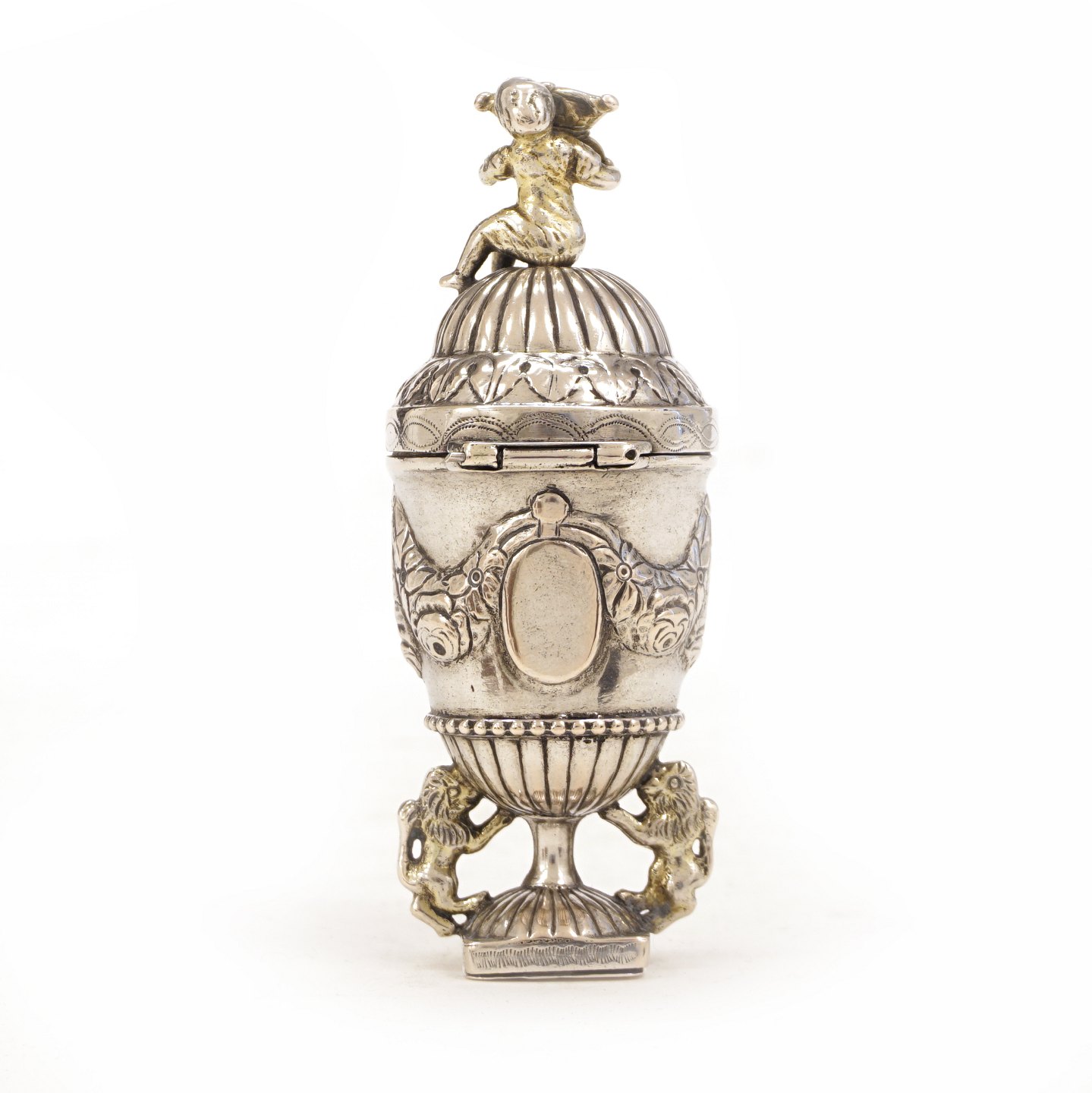 Riechdose aus teilweise vergoldetem Silber. Peter Sæbye, Kopenhagen, 1810-45. H: 10,1cm