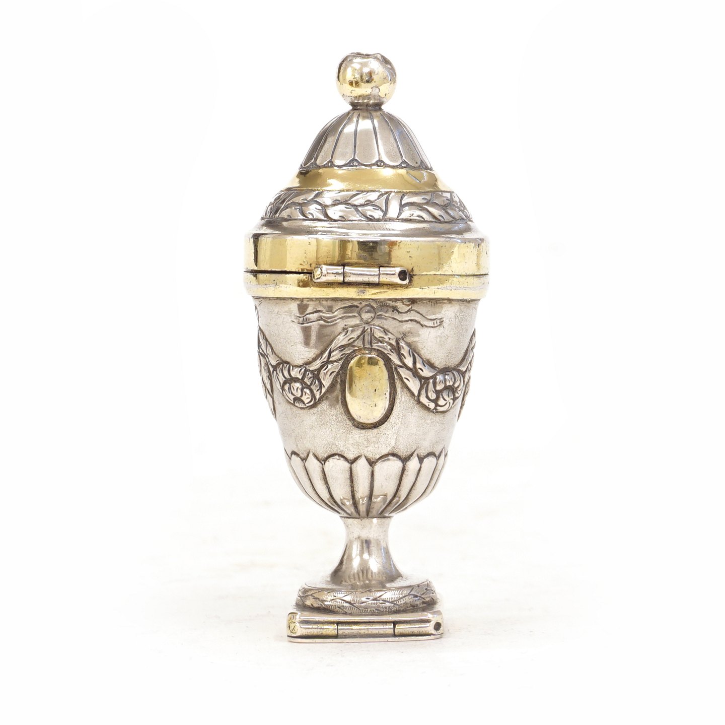 An early 19th century partly gilt Danish silver vinaigrette. Johan Adolf Müller, Haderslev. H: 8,7cm