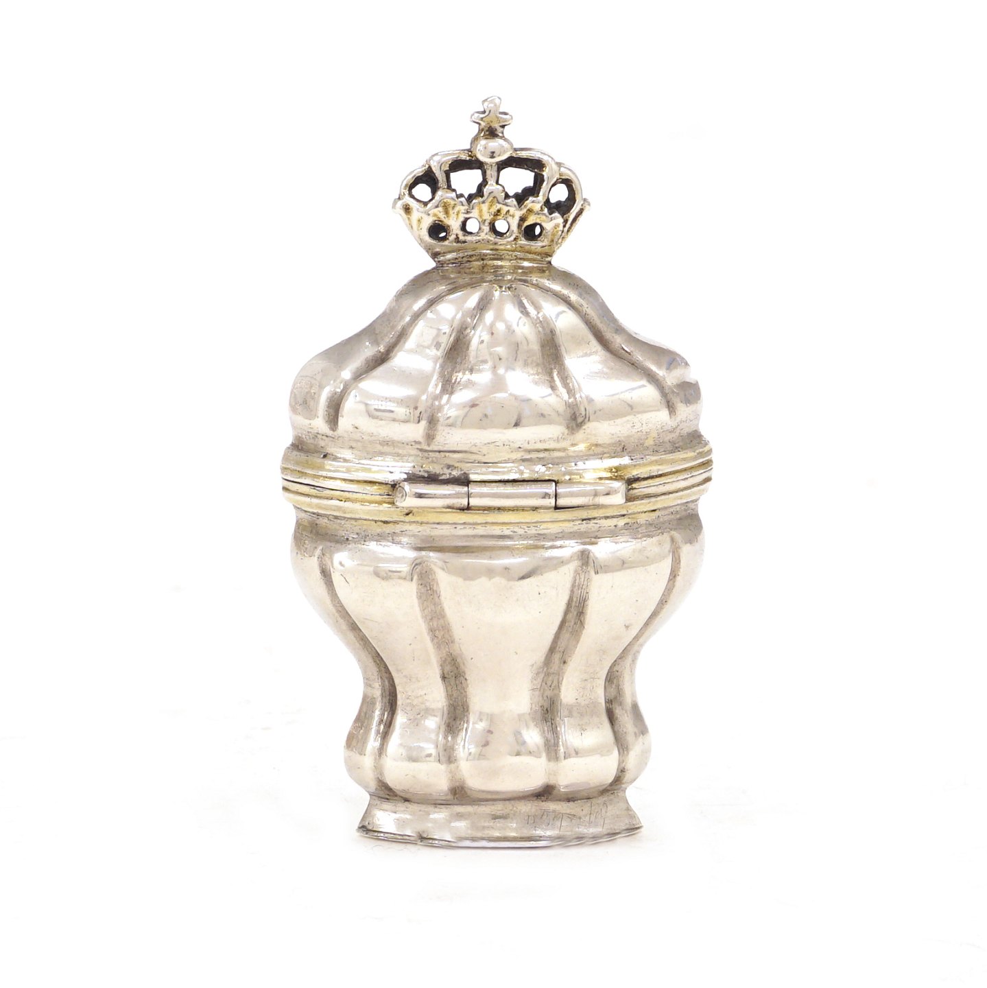 Hovedvandsæg af delvist forgyldt sølv. Mester C. P. Høvring, Randers/Hobro, 1754-82. H: 6,8cm. V: 32gr
