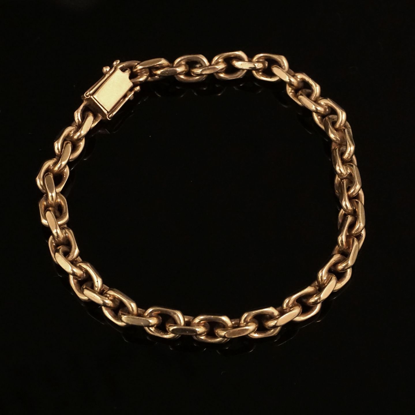 Anker armbånd i 14kt guld. Ledstørrelse: 8x6mm. L: 19,7cm. V: 21,9gr