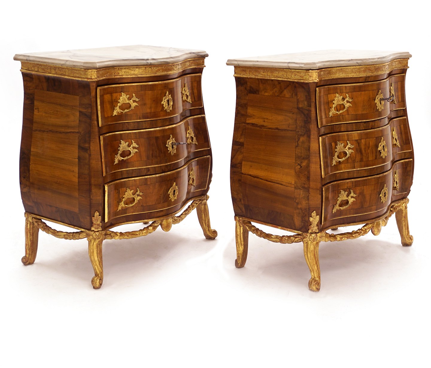 Pair of Danish mid 18th century partly gilt walnut chest of drawers Denmark circa 1750 H: 78cm. W: 67cm. D: 44cm Item number: 27318