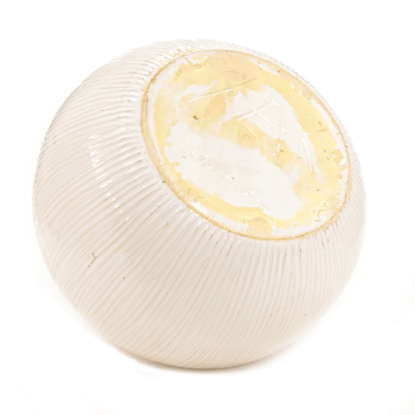 Stor riflet Kählervase med hvid glasur. Signeret HAK for Kählers Værksted. H: 30cm