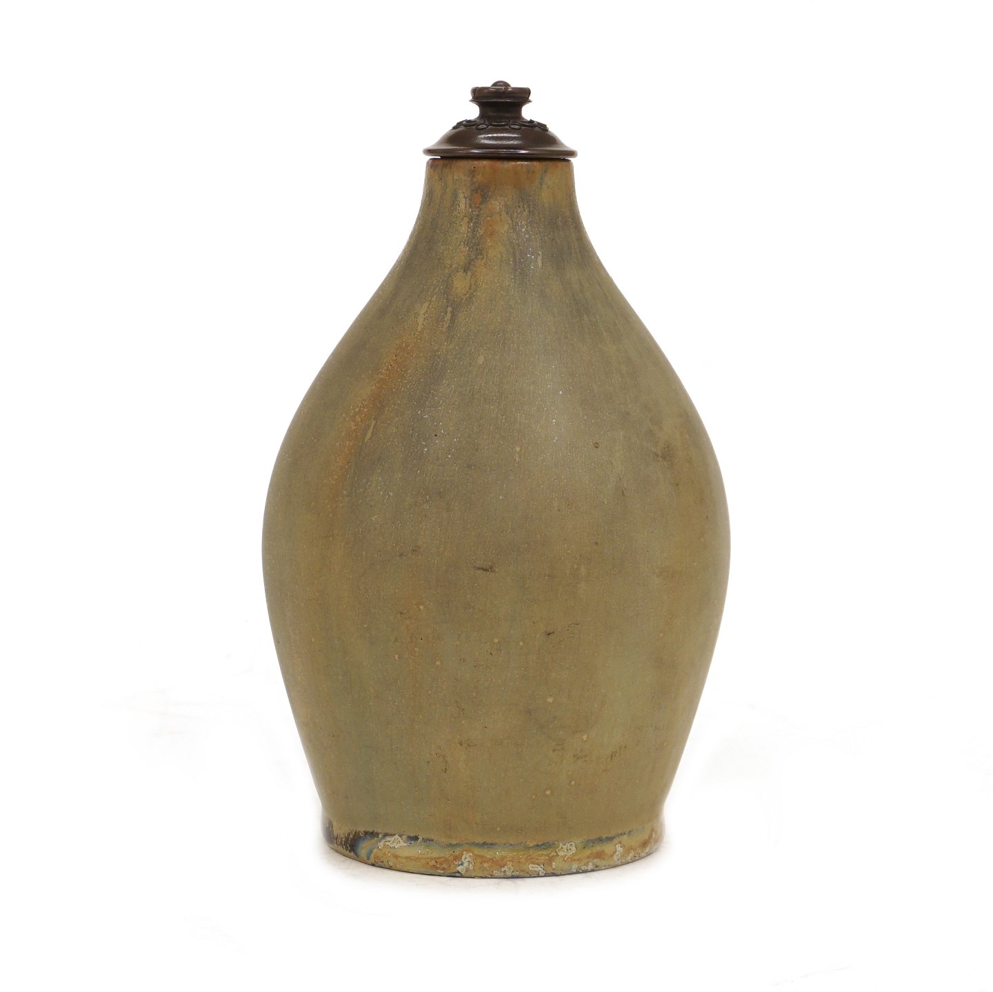 Lidded stoneware vase. Signed Royal Copenhagen. H: 17,5cm