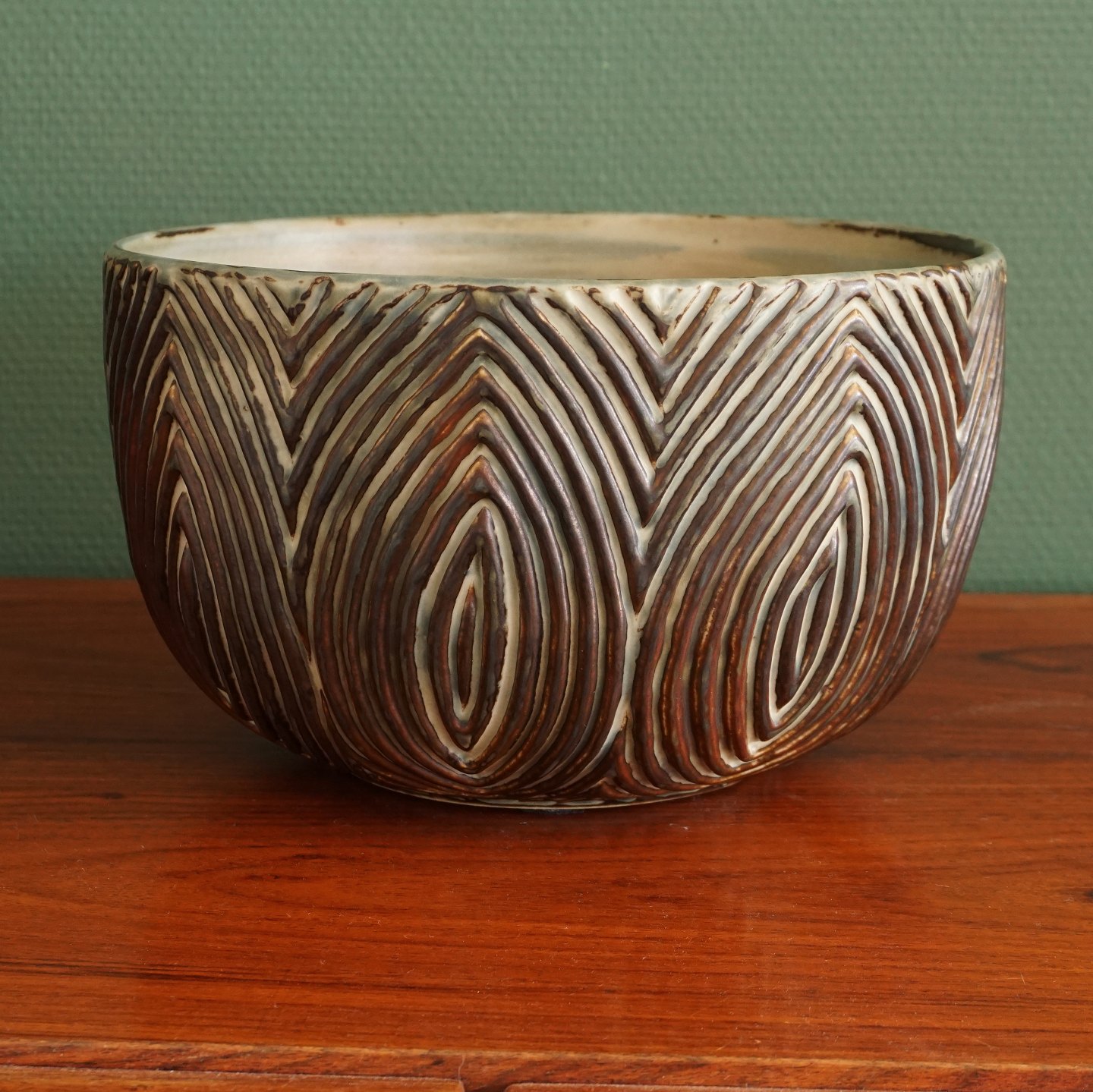 Large Axel Salto sung glazed stoneware bowl produced by Royal Copenhagen