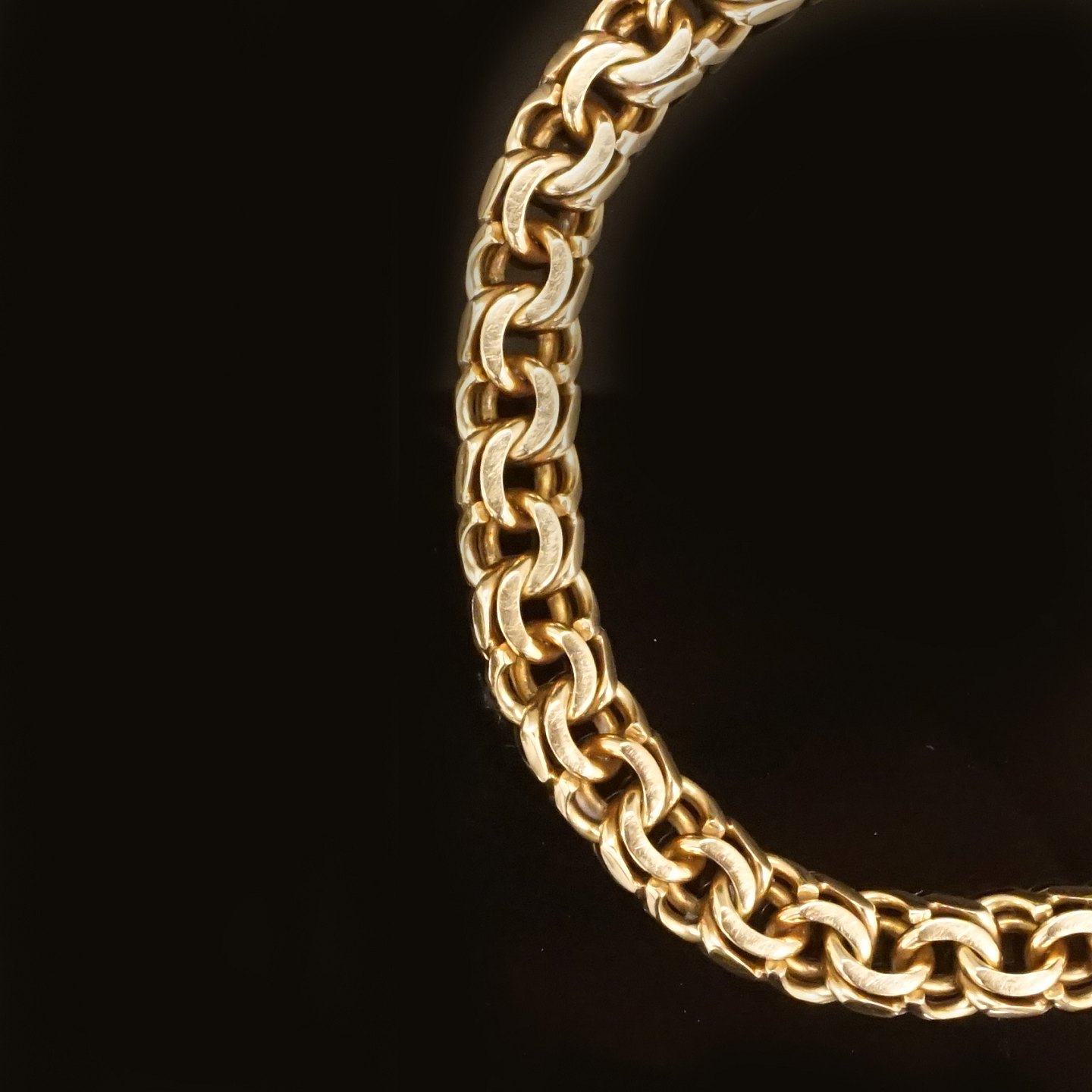 Bremer Jensen, Randers: Kraftigt Bismarck armlænke i 14kt guld med kasse- og dobbelt sikkerhedslås