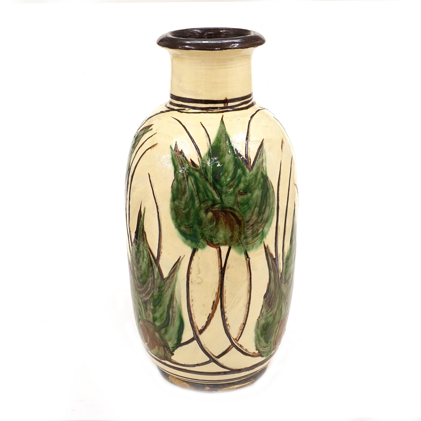 Stor Kæhler vase keramik dekoreret med stiliserede blomster. Signeret. H: 53cm