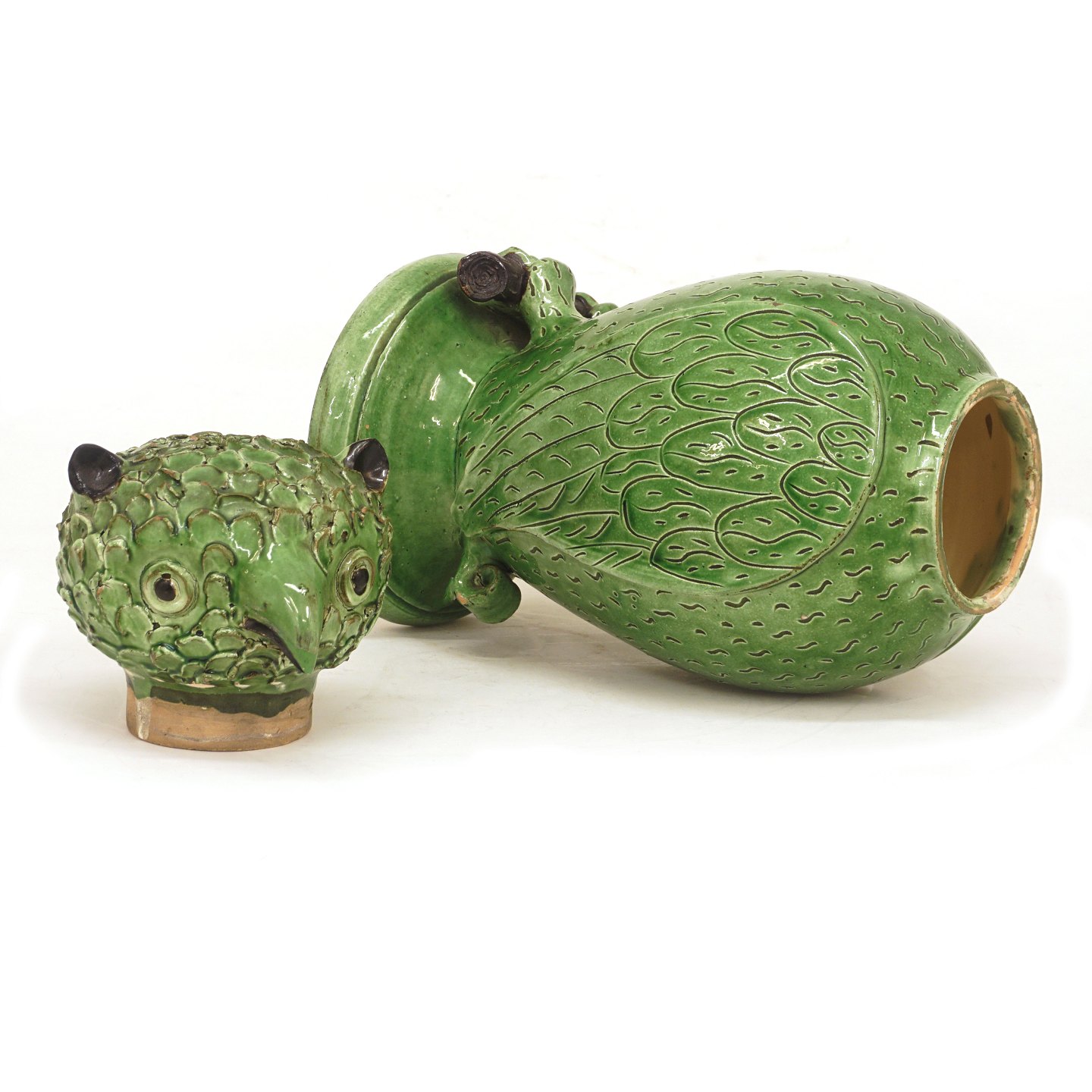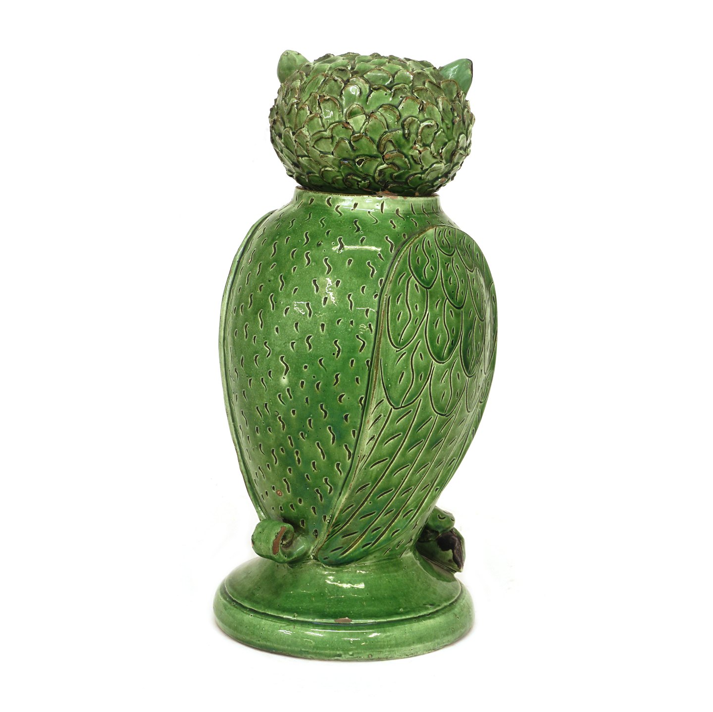 Green glazed stoneware owl vase. Denmark circa 1880. H: 36cm