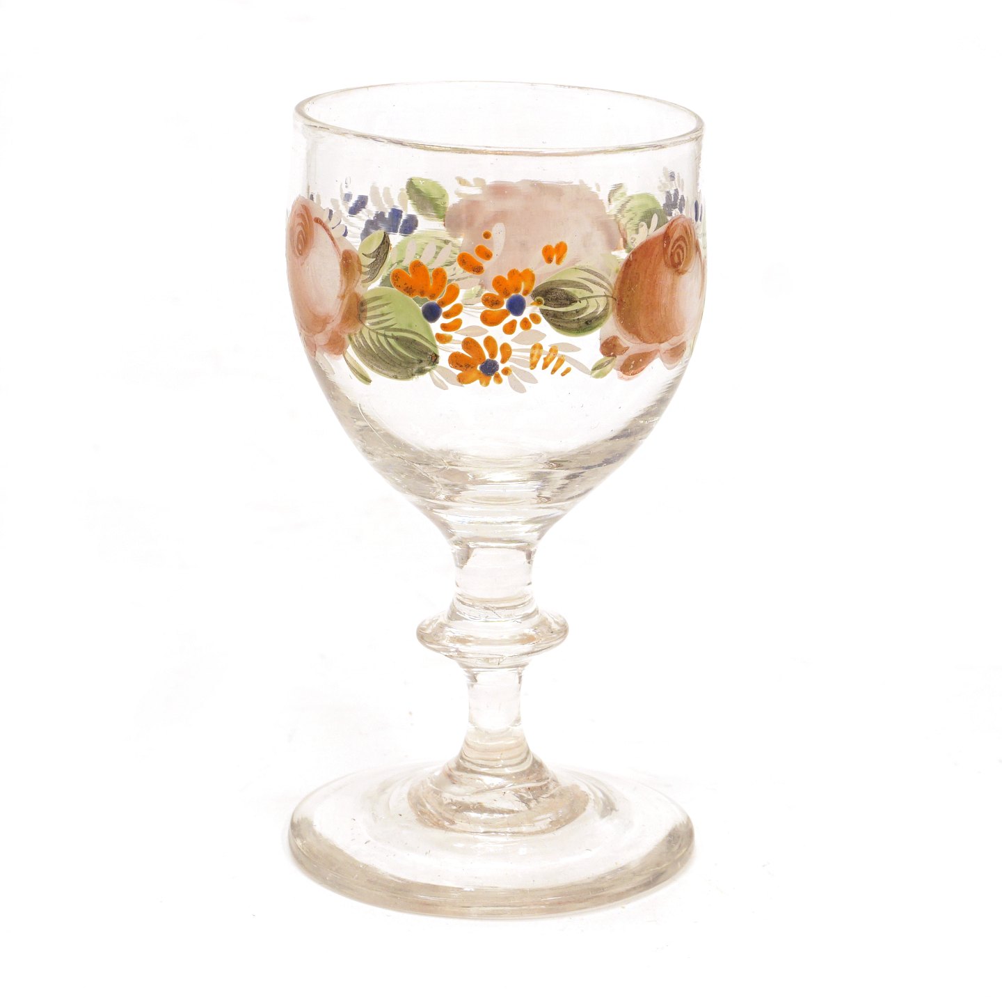Emaljedekoreret glas med rosenmotiver. Fremstillet ca. år 1860. H: 11,6cm