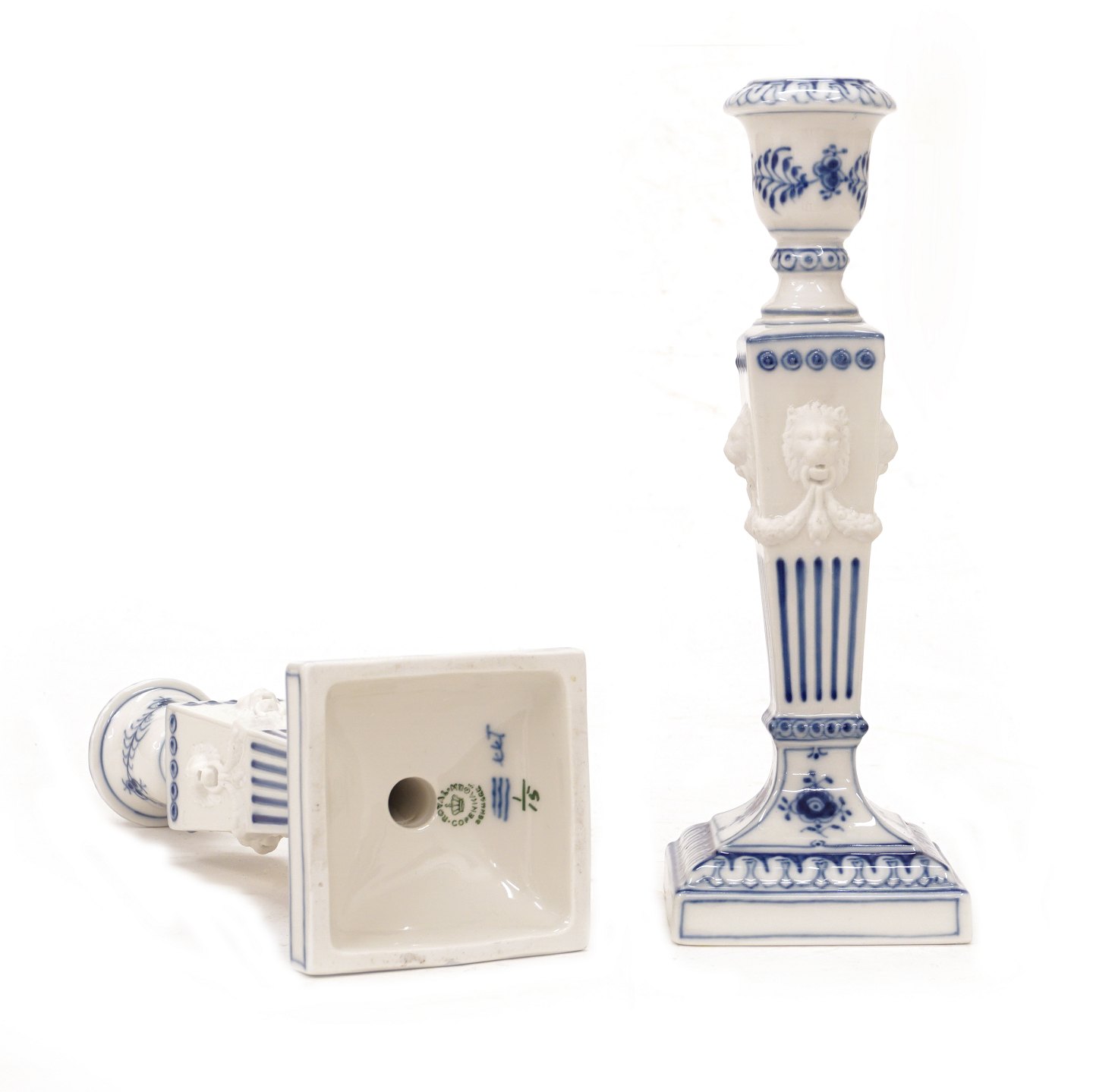Pair of Royal Copenhagen blue fluted candlesticks. 1. quality. #15. H: 23cm