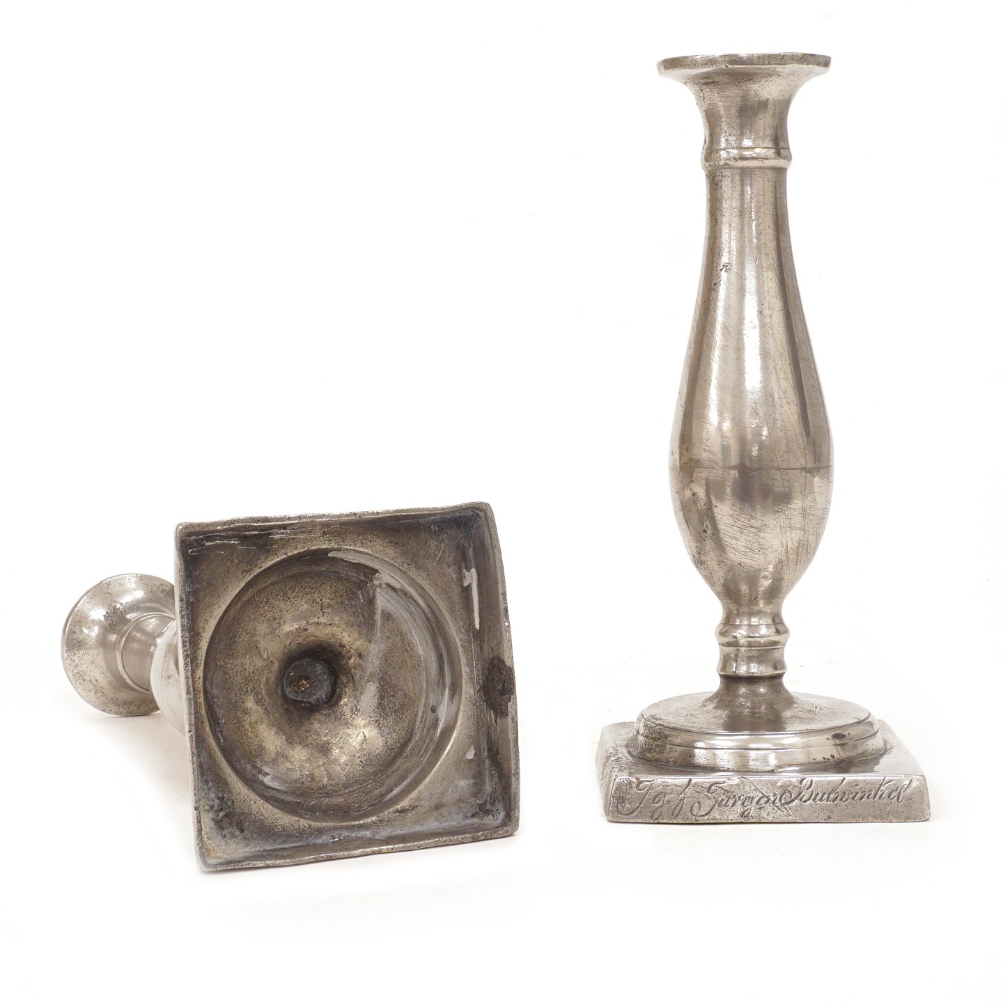 Pair of Empire pewter candlesticks. Circa 1840. H: 20cm