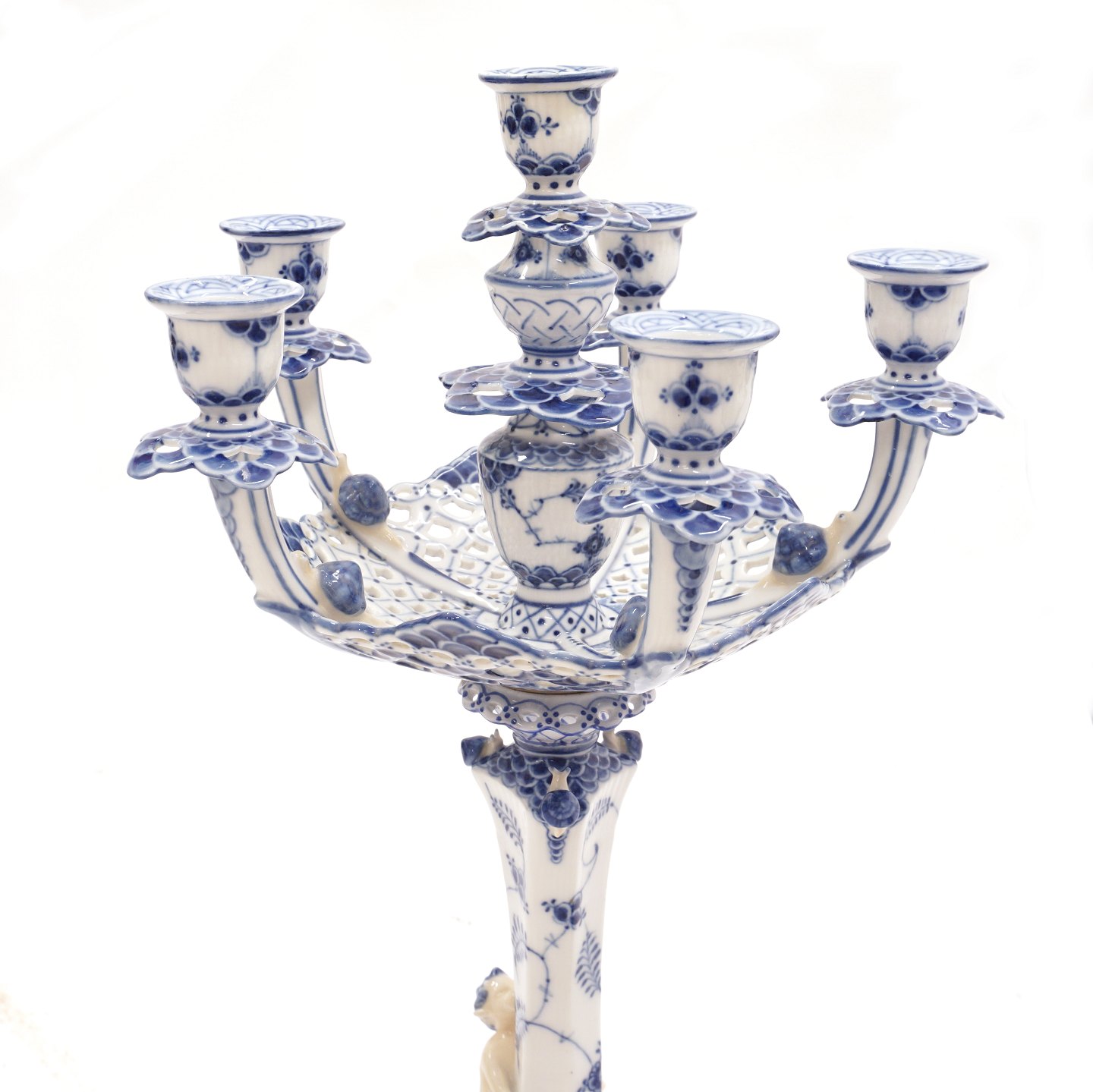 Pair of Royal Copenhagen blue fluted full lace porcelain candelabra #1006 Circa 1920 H: 57cm. D: 28cm Item number: 34425