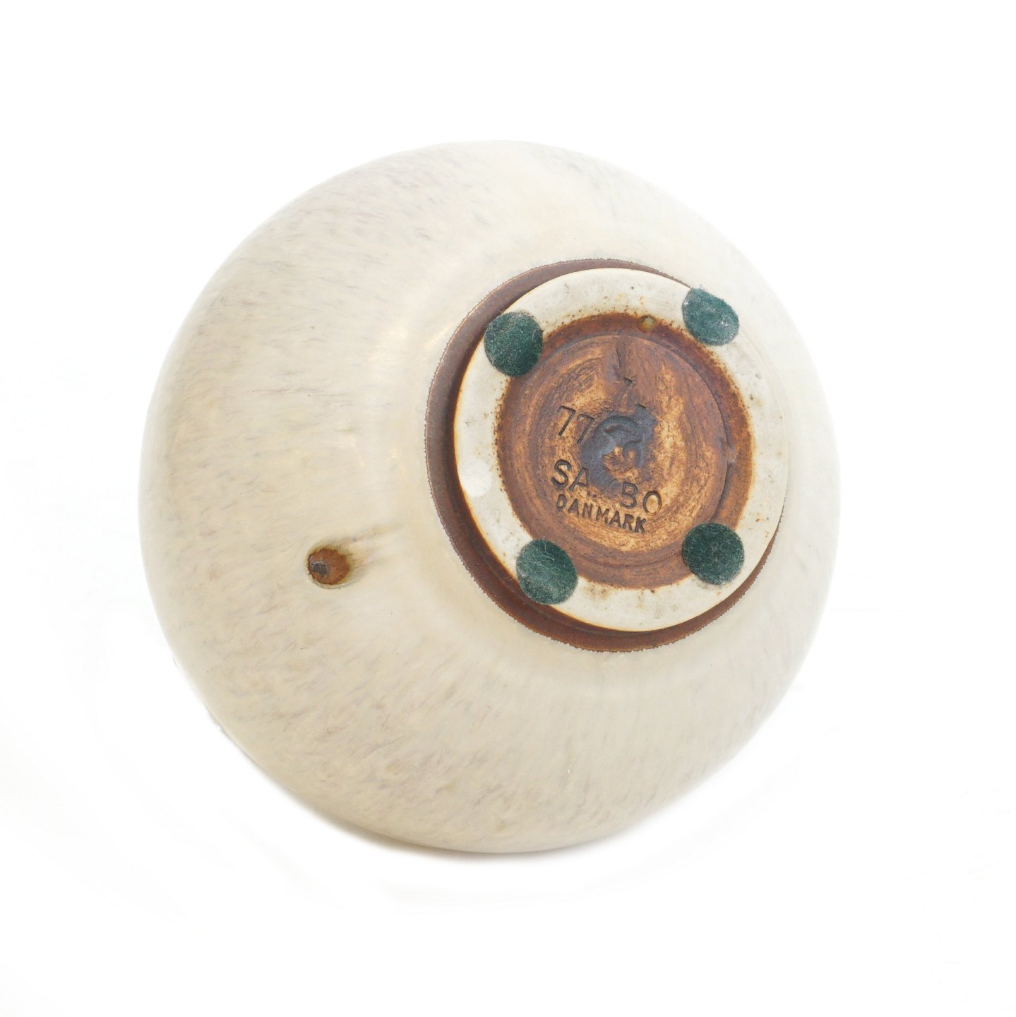 Light beige glazed Saxbo stoneware vase. Signed Saxbo 7. H: 14cm