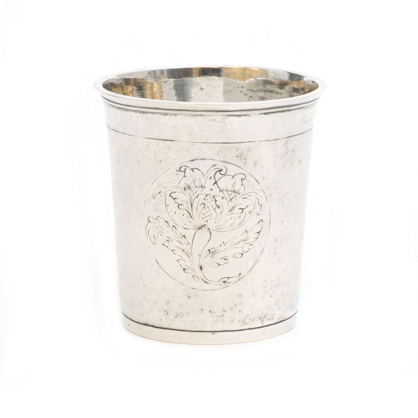 Danish silver cup by Povl Hansen, Kolding, 1742-64. Dated 1761. H: 9,1cm. W: 136gr