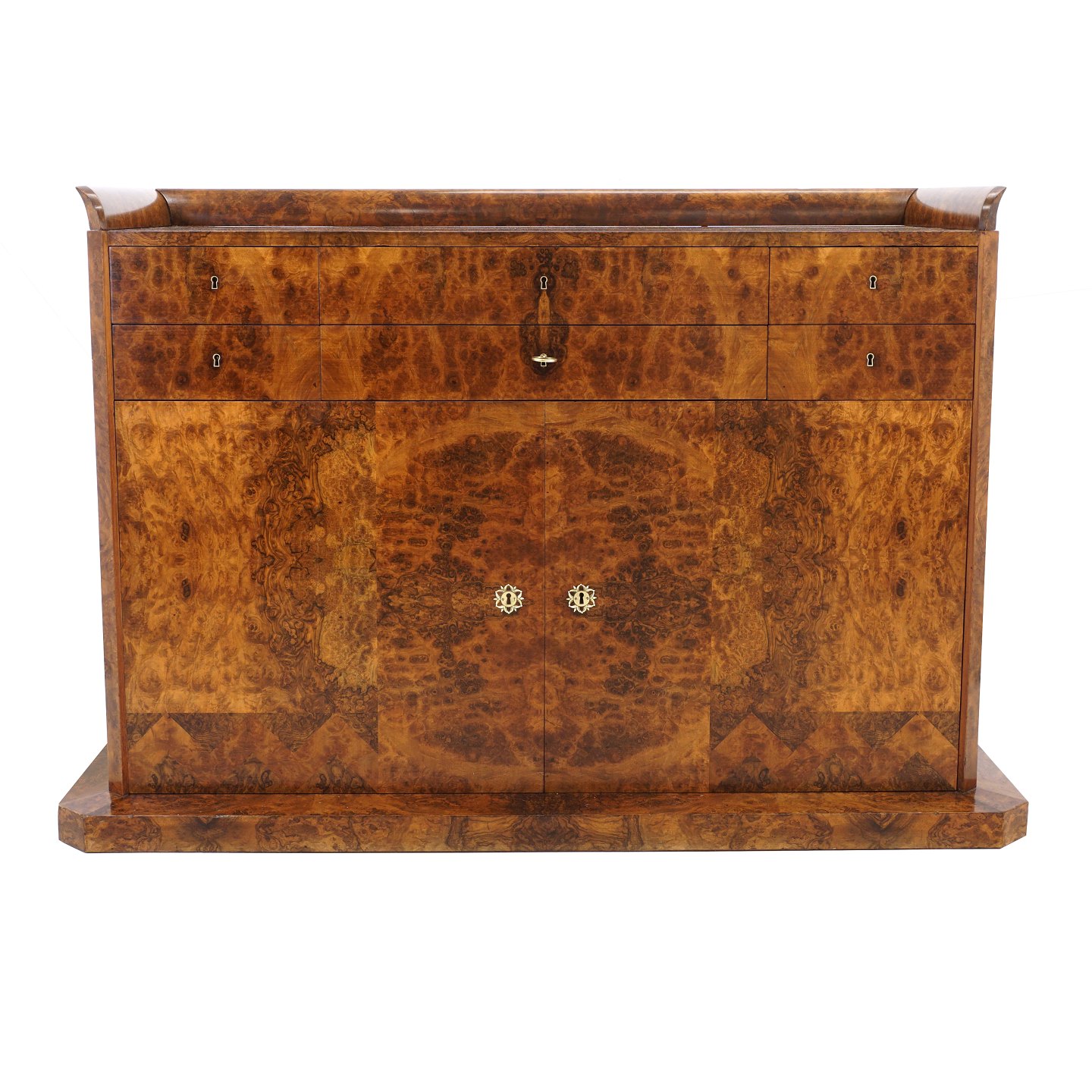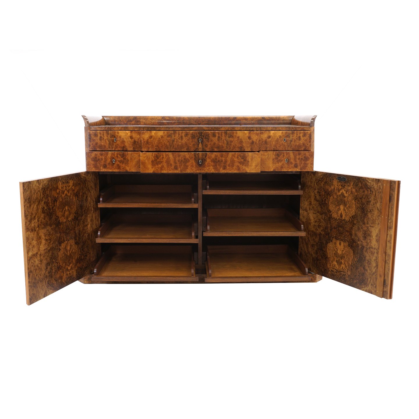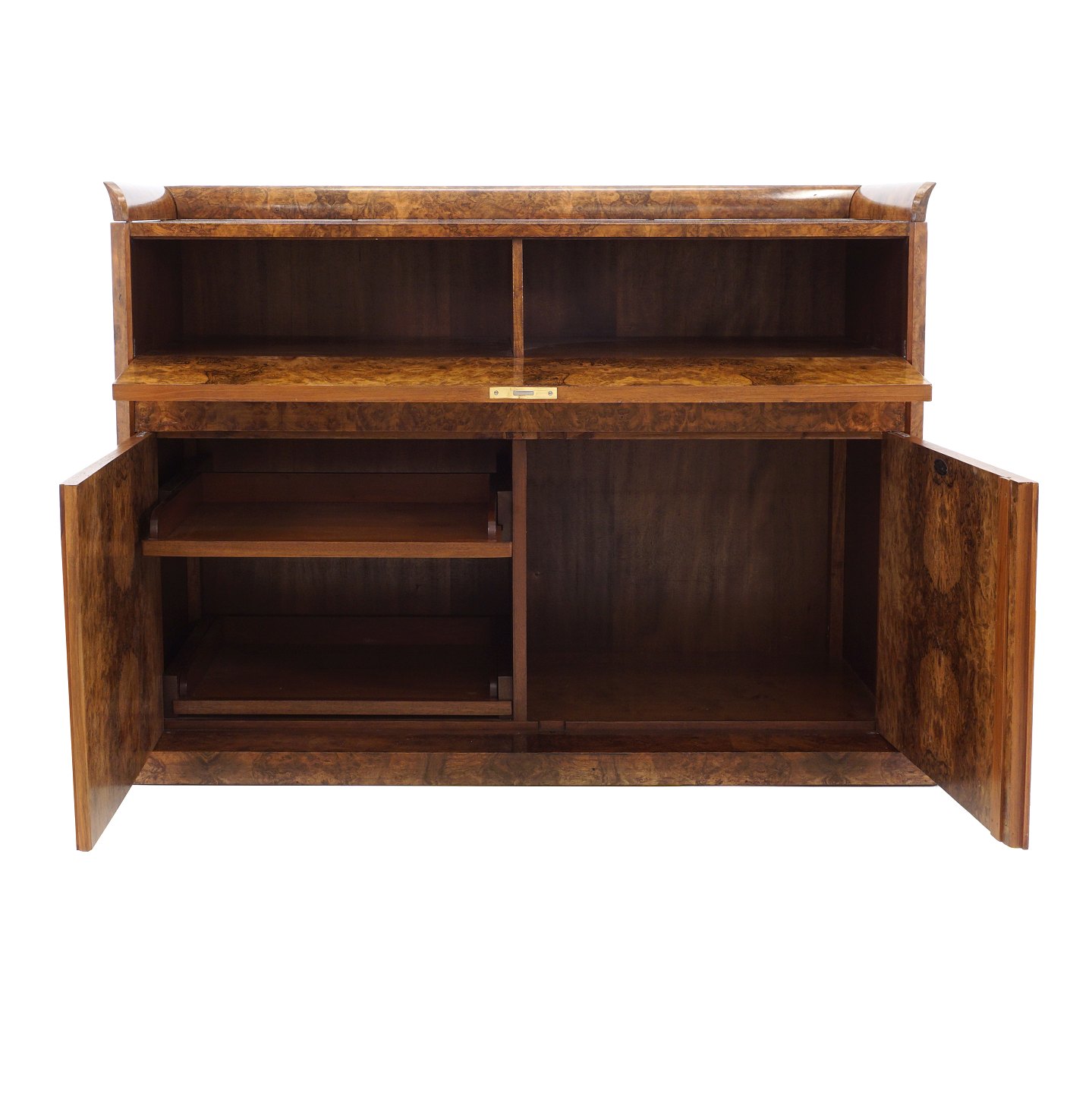Pair of Danish Art Deco walnut sideboards. Design by Bent Helweg-Møller and manufactured by C. B. Hansen, Copenhagen, circa 1925. H: 93cm. W base: 139cm. D: 61cm