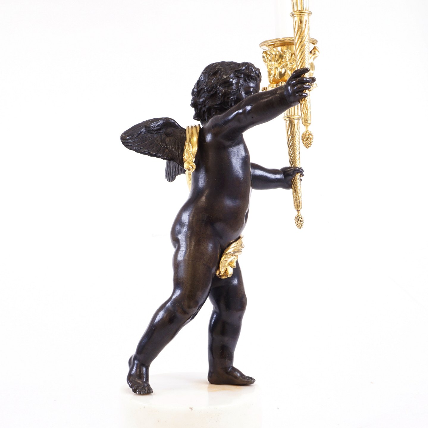A Pair of early Empire fire gilt bronze candelabra with two putti each carrying two candlesticks