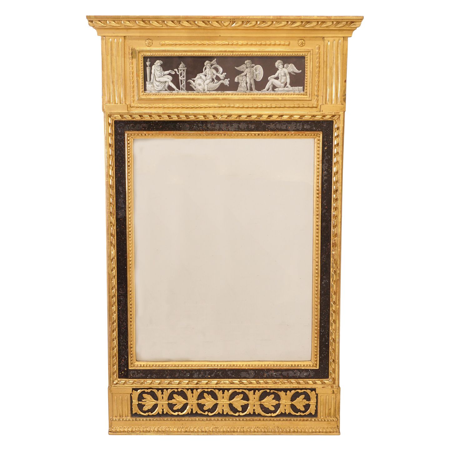 Gustaviansk kaminspejl forgyldt med porfyrimitationer. Sverige ca. år 1780-1800. 113x65cm