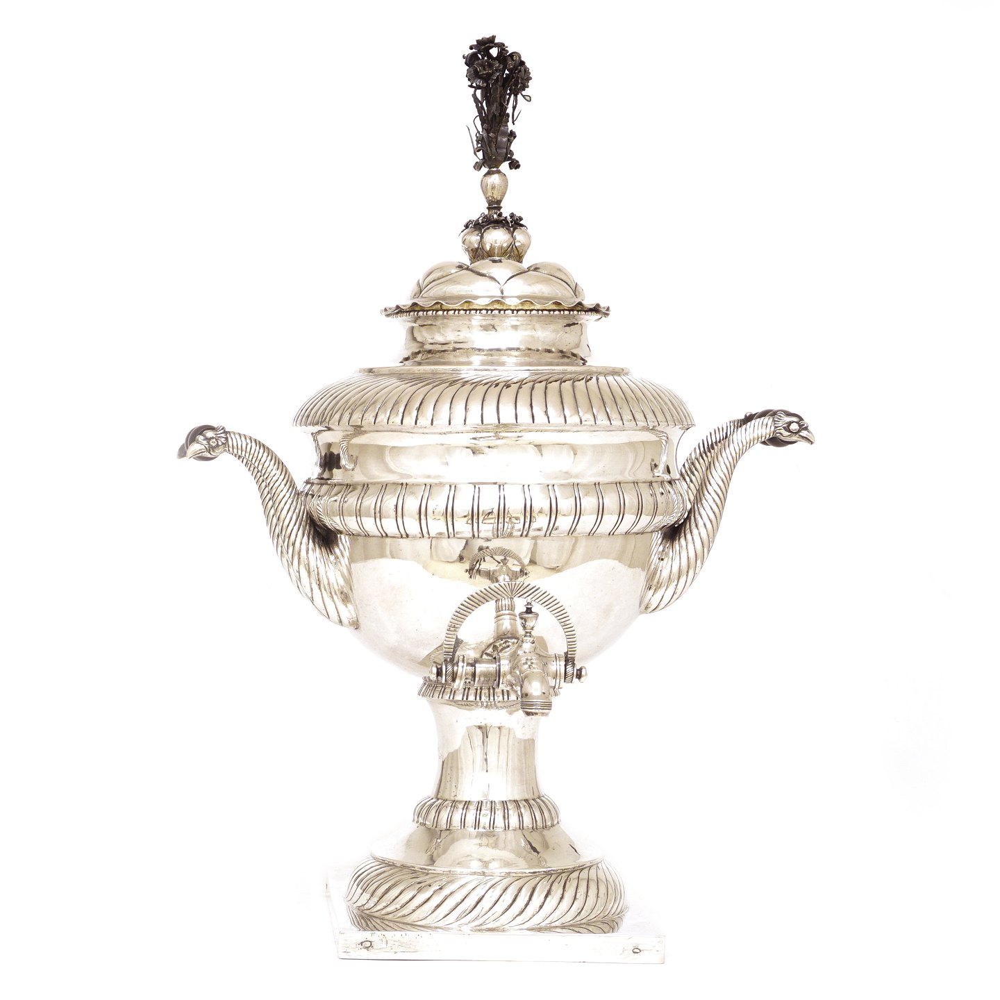 Large Empire silver water machine Copenhagen 1822 H: 42cm. W: 1.544gr Item number: 5788