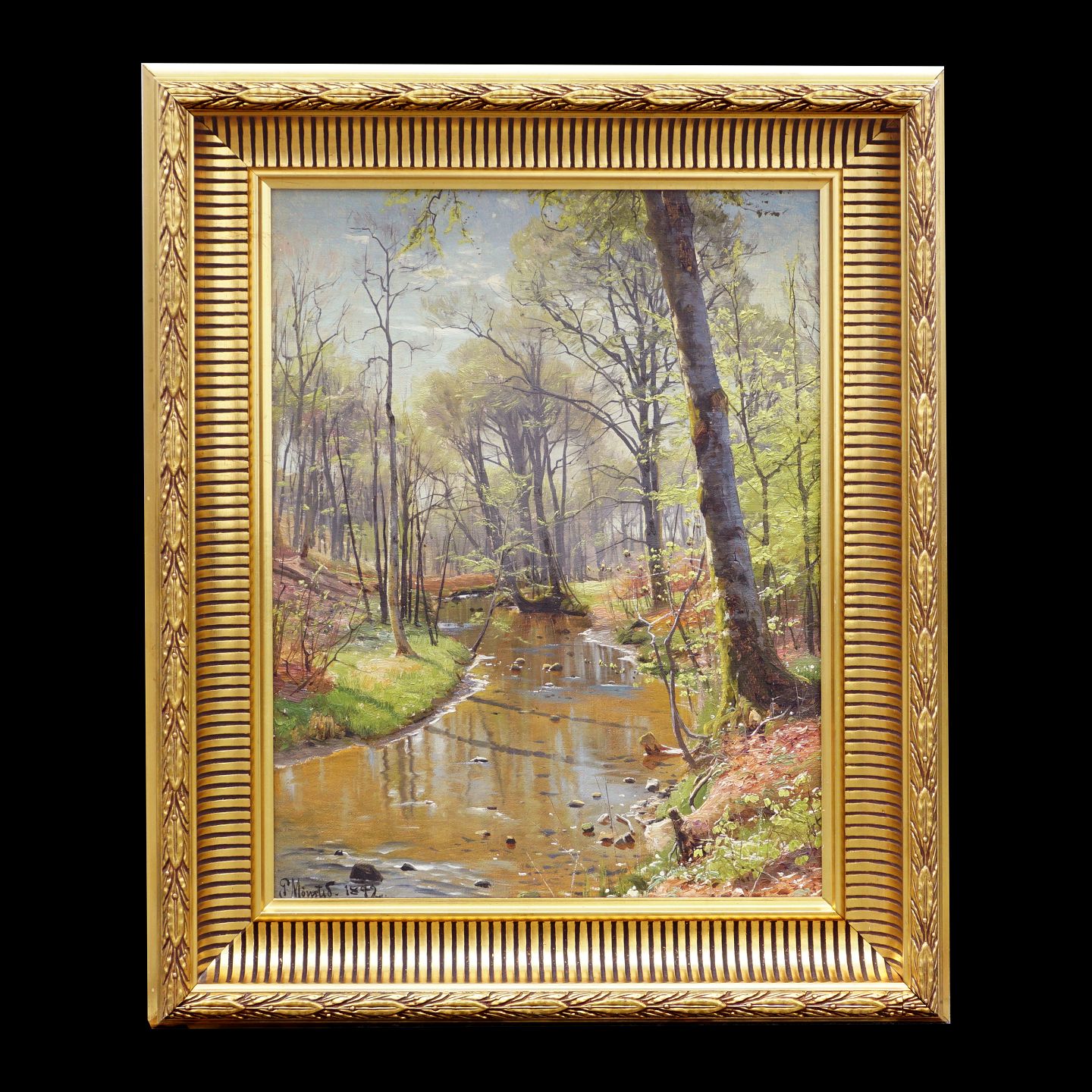 Peder Mønsted, 1859-1941, oil on canvas. The stream at Sæby. Signed and dated 1892. Visible size: 40x30cm. With frame: 55x45cm