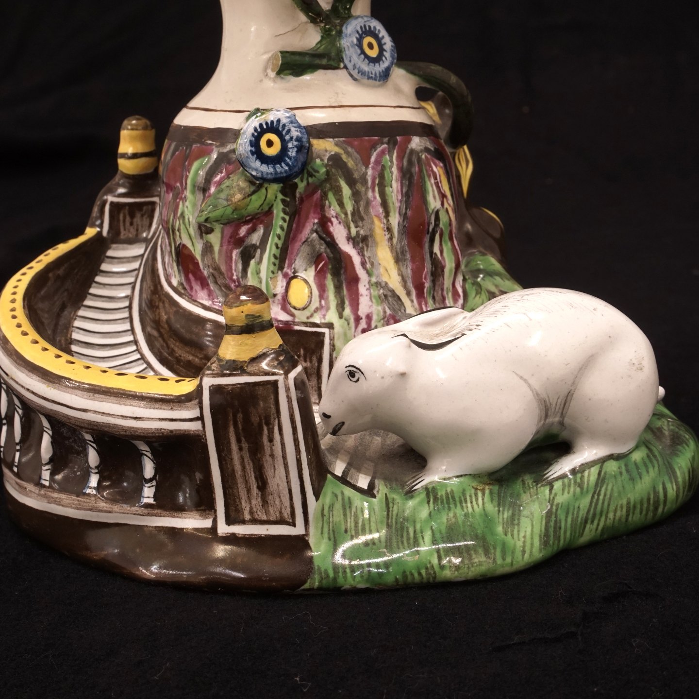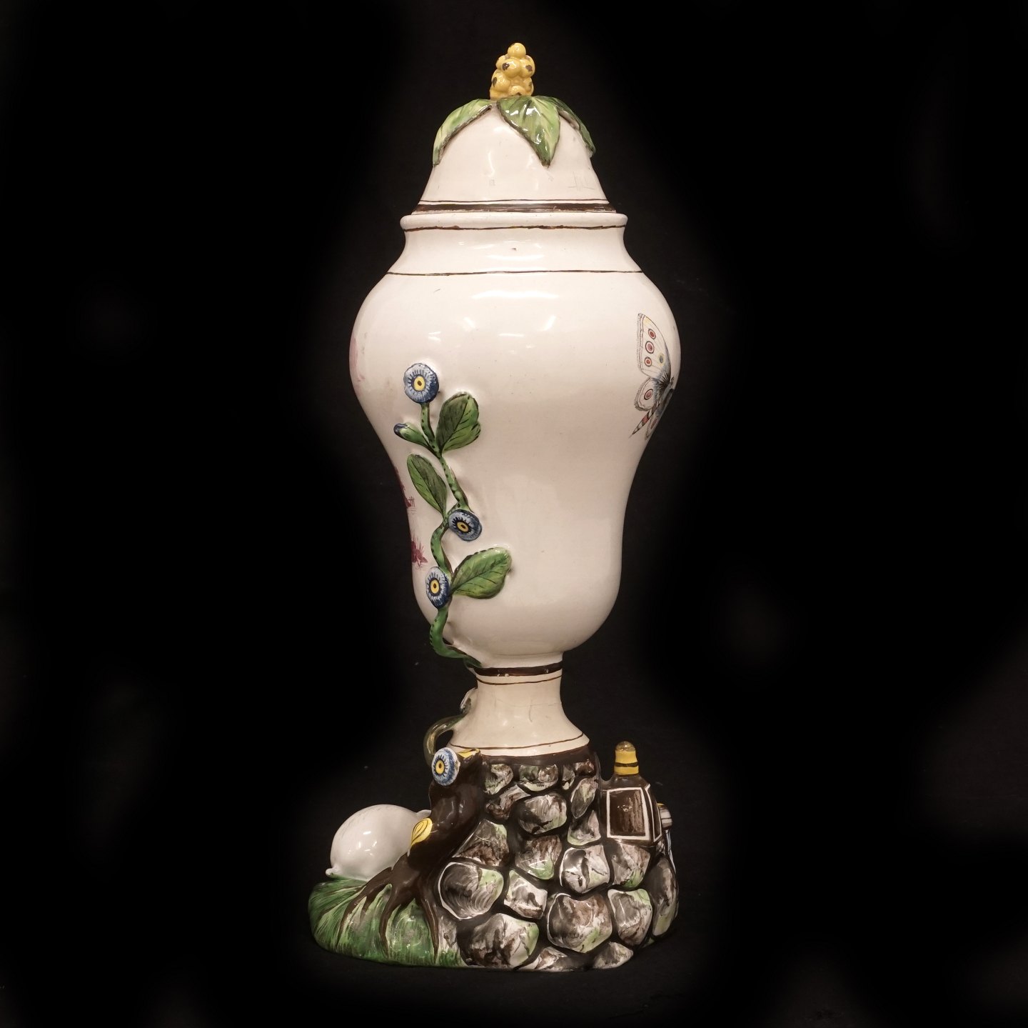 Polykromdekoreret kaninvase med låg udført i fajance