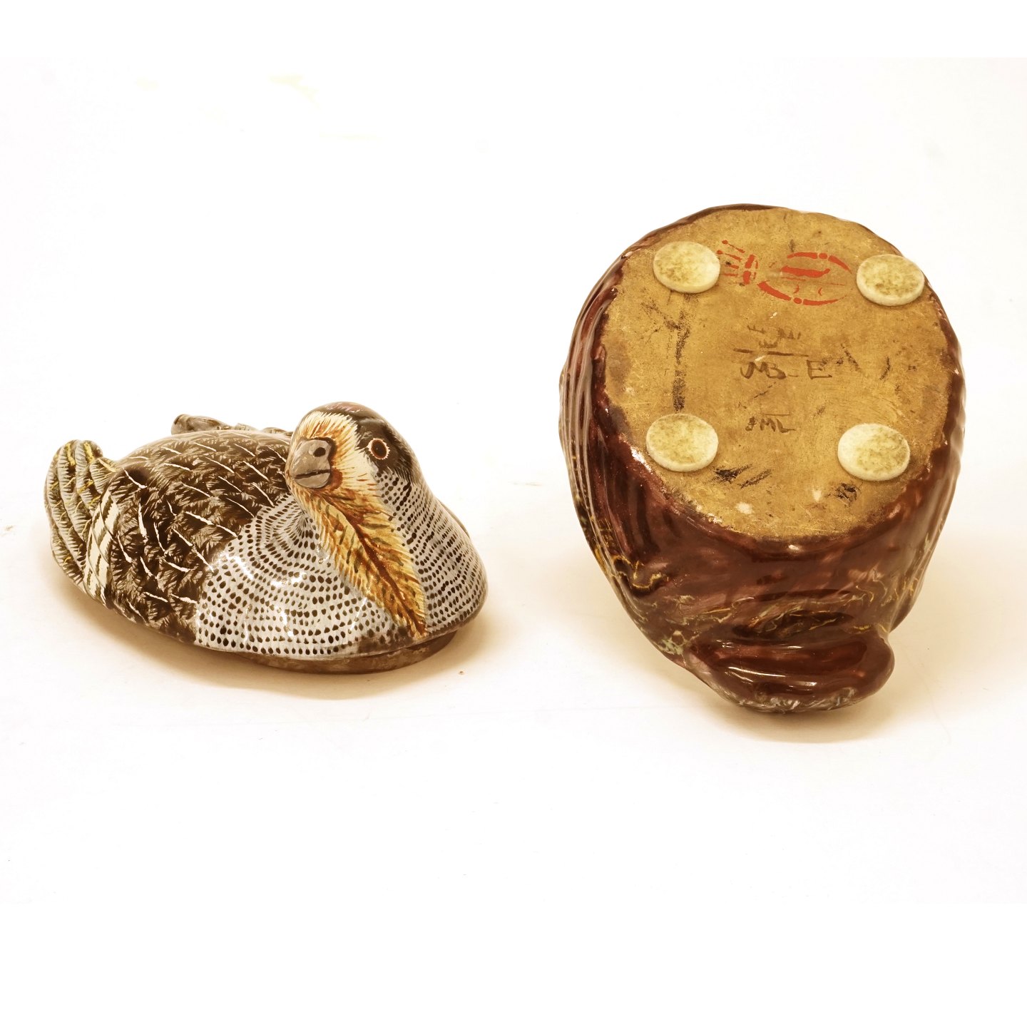 Polykrom dekoreret terrin i form af agerhøne. Signeret Marieberg ca. år 1770. Ehrenreichs Periode. H: 9,5cm. L: 16cm