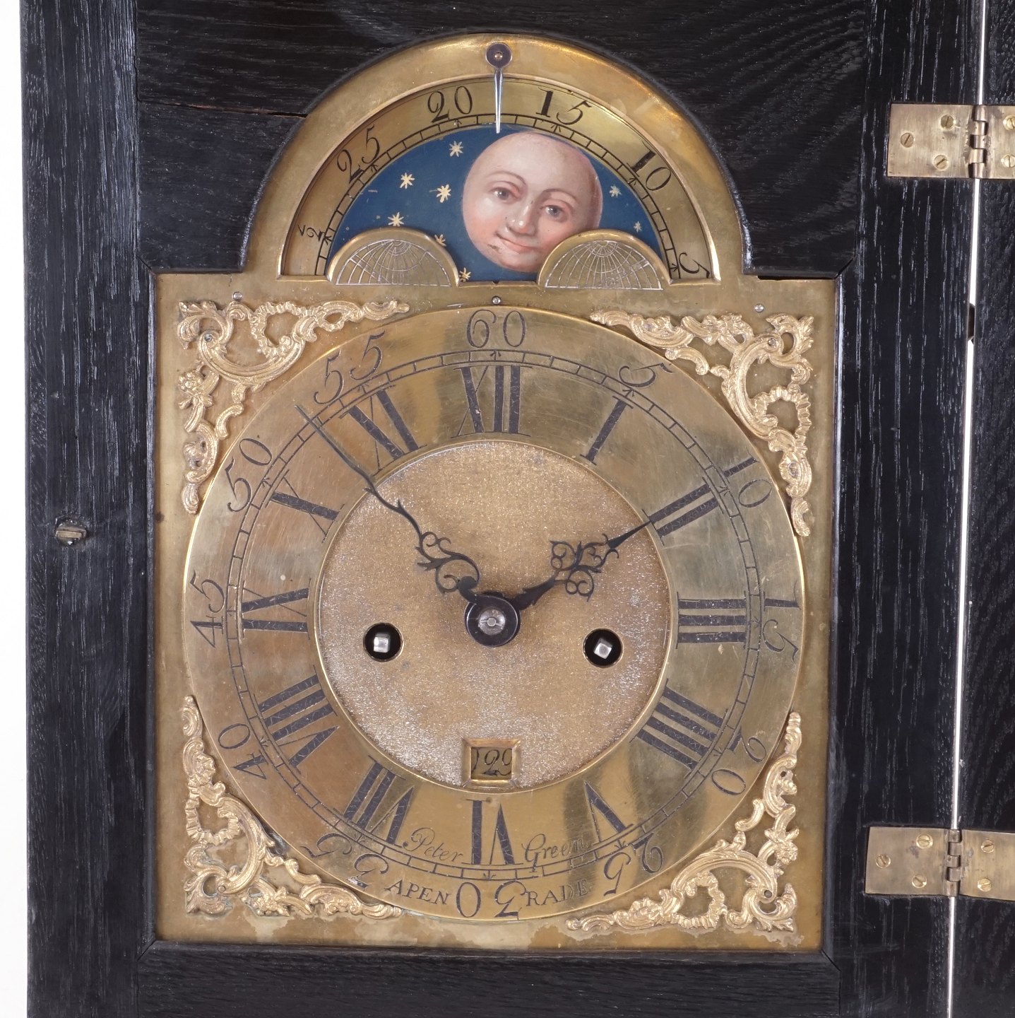 Bracket clock by Peter Green, Apenrade, Denmark circa 1750. H: 52cm. W: 31cm. D: 18cm