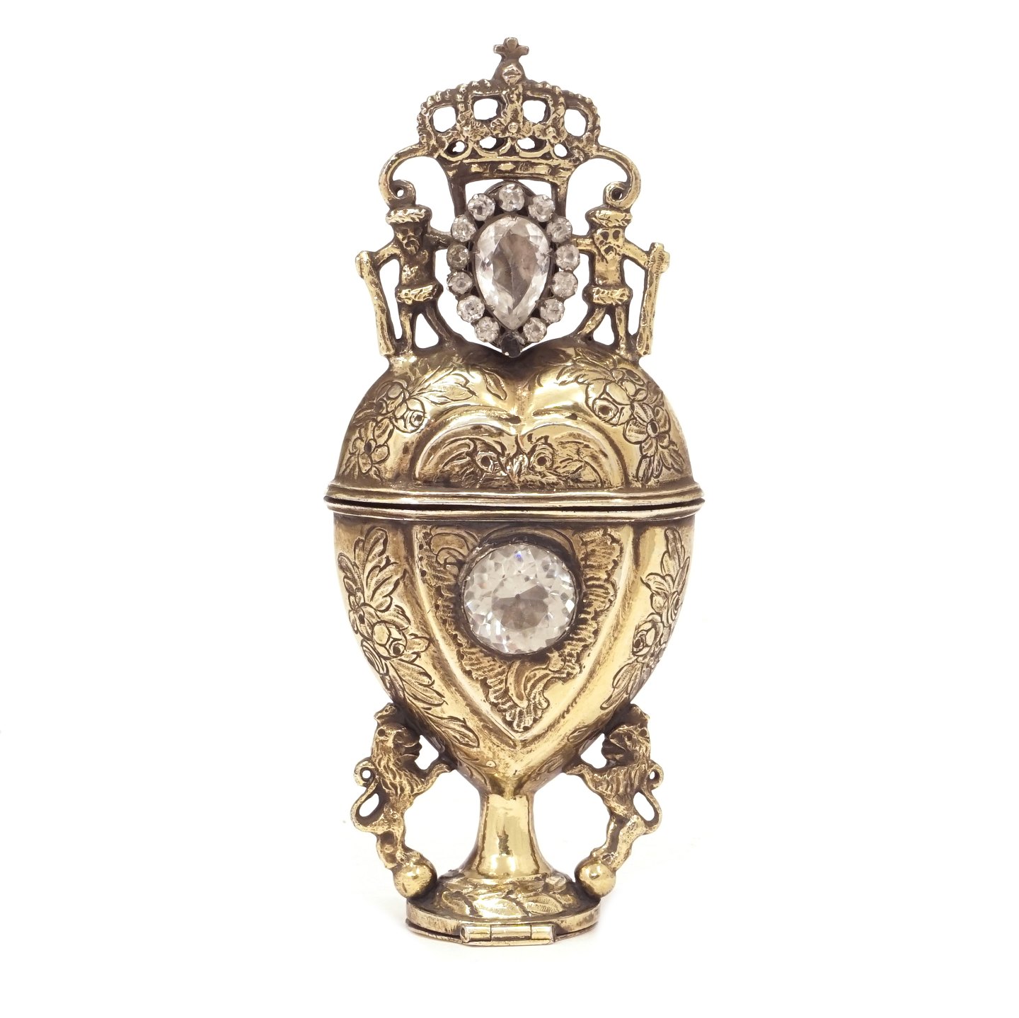 Amageræg i forgyldt sølv rigt prydet med glasflusser, vildmænd og løver