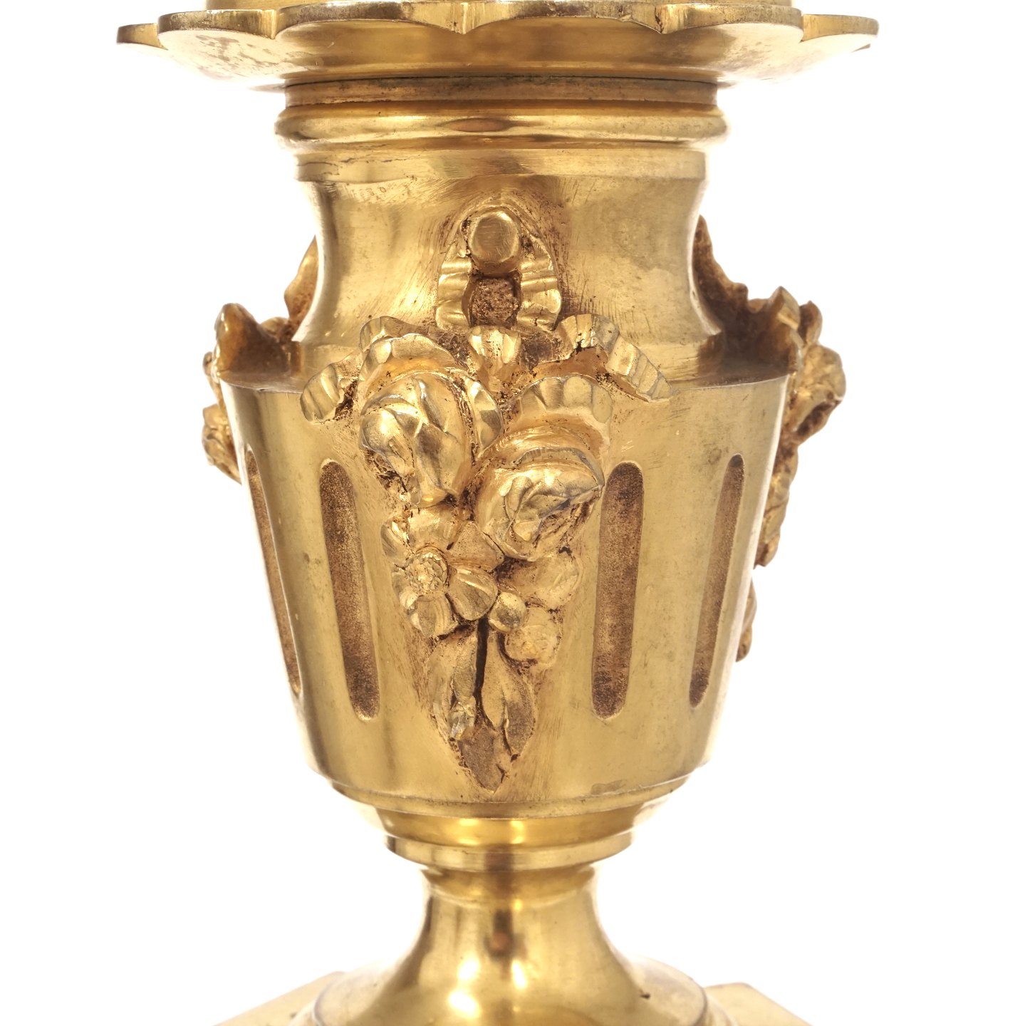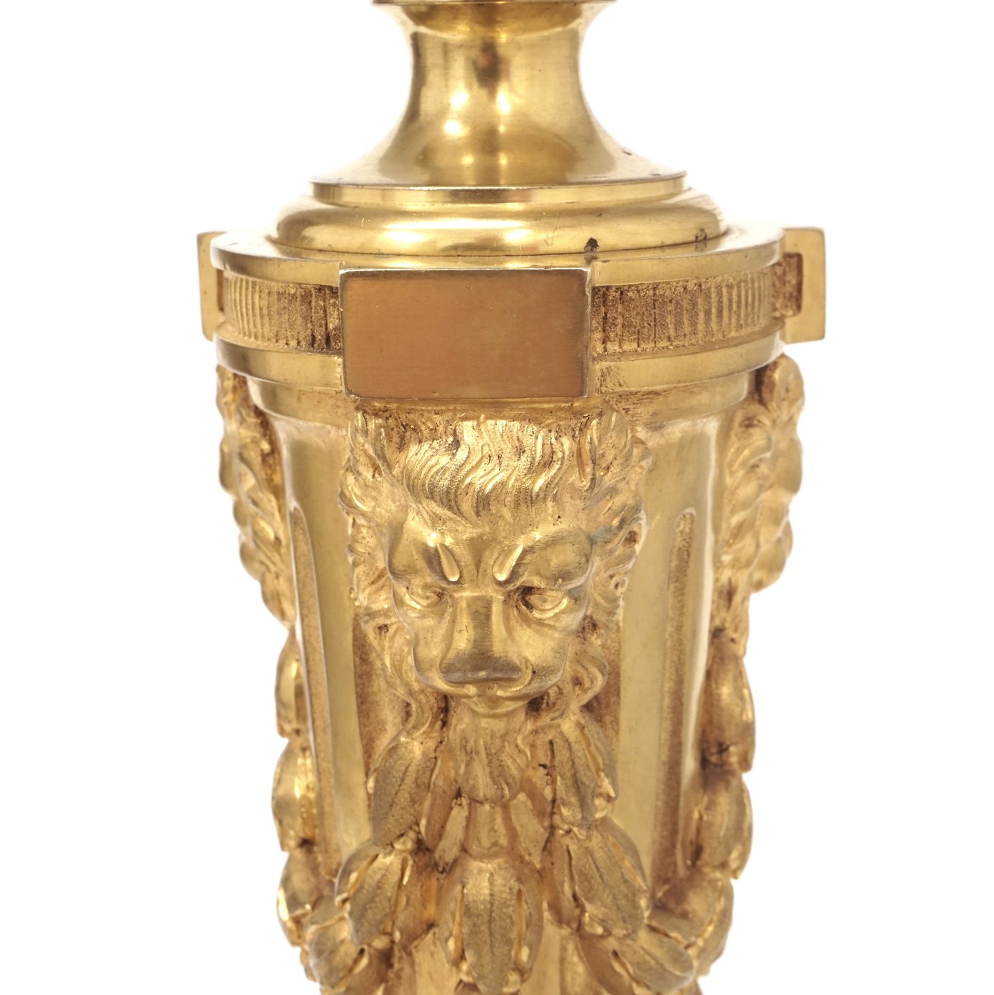 Louis XVI-style firegilt bronze table lamp. Signed Gagneau & Co. France circa 1880-90. H: 79cm