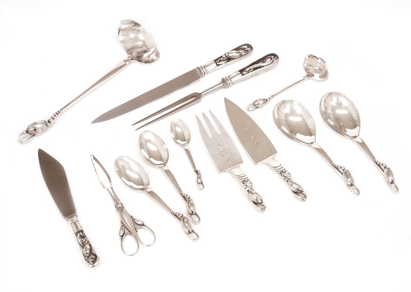 Georg Jensen Blossom sterlingsilver cutlery for eight persons. 51 pieces