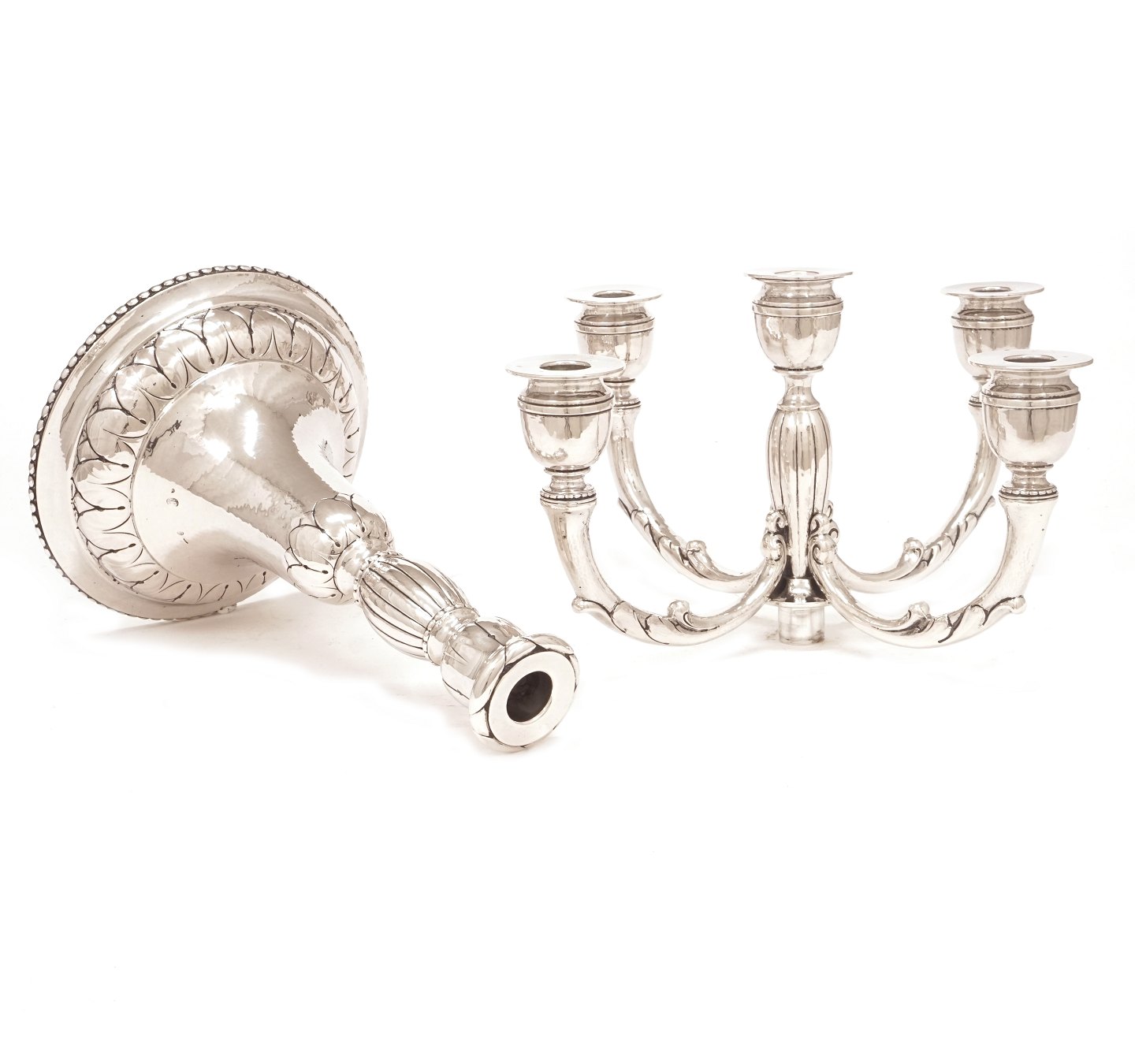 Large pair of silver candelabra by Gran & Laglye, Copenhagen, 1923