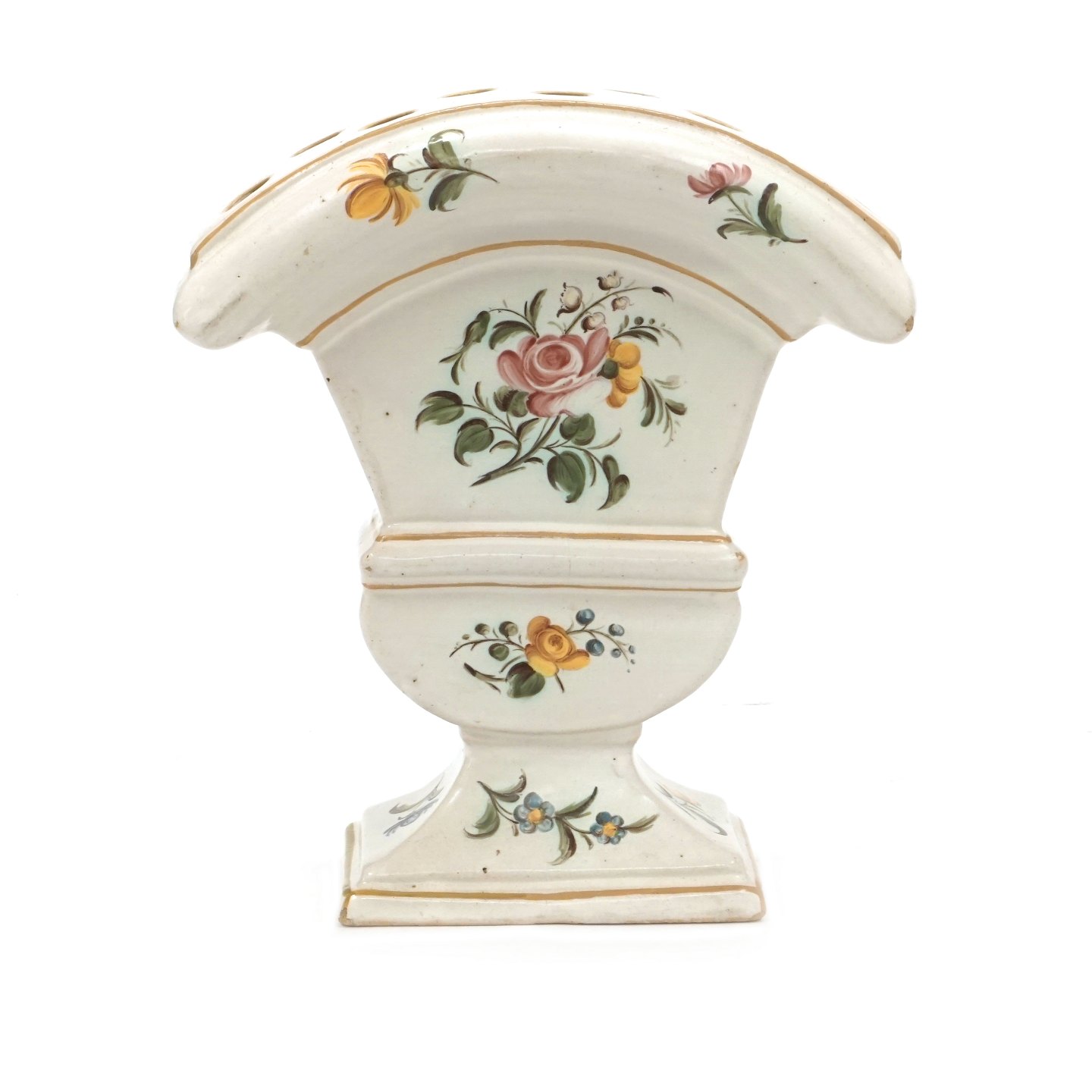 Kastrup vifteformet vase i polykromdekoreret fajance. Fajancefabrikken i Kastrup ca. år 1760. H: 22cm