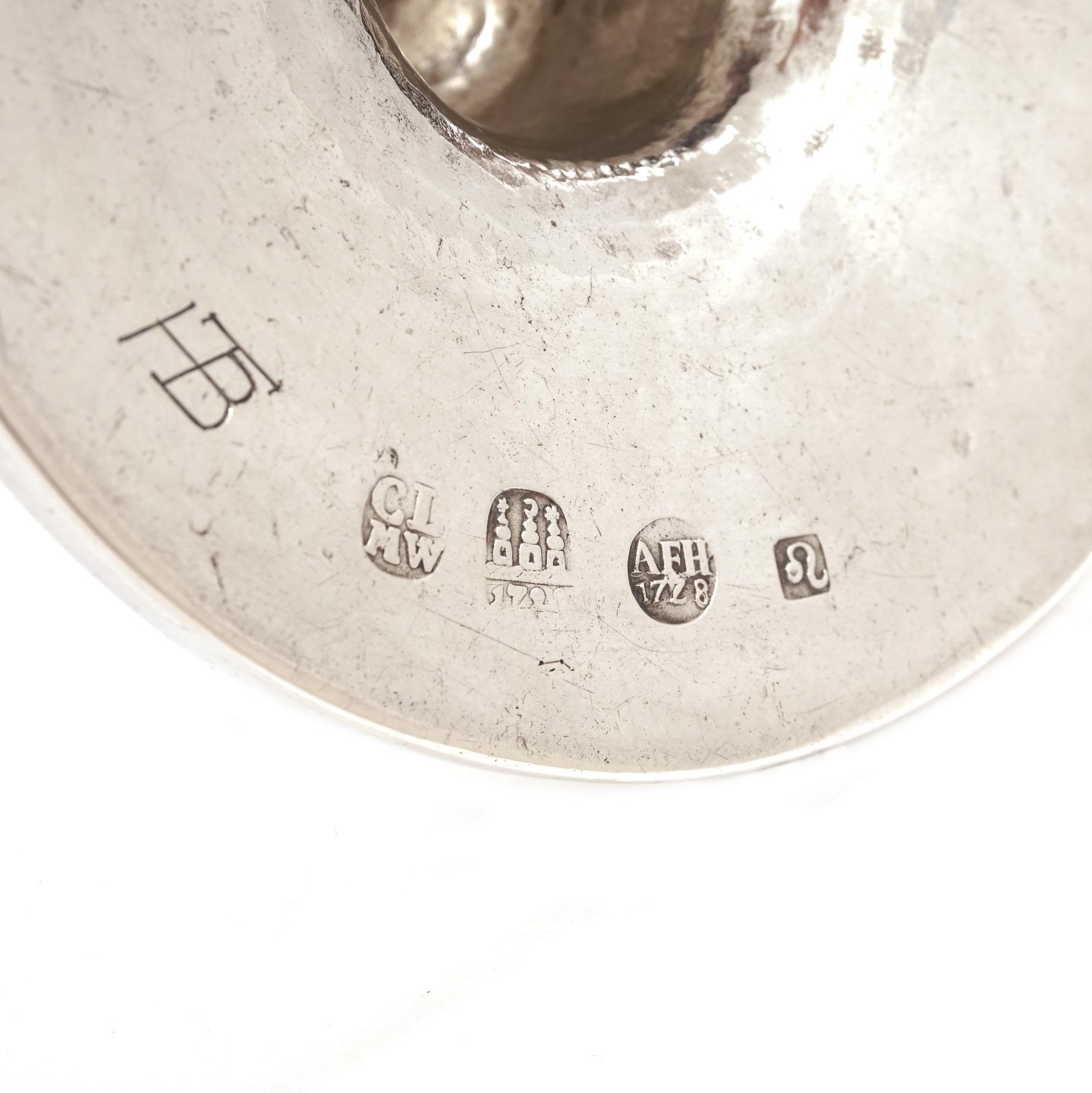 Pair of early Baroque silver candlesticks by Asmus Fridrich Holling, Copenhagen, 1727-73, dated 1728 H: 12cm. W: 458gr Item number: 1623