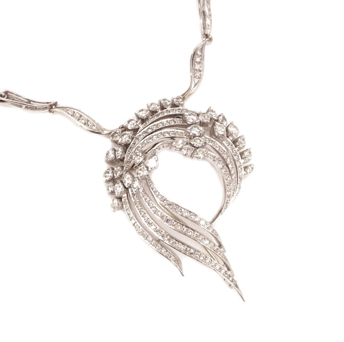 18kt whitegold collier with diamonds. The 10 largest diamonds circa 0,1ct each. L: 44cm