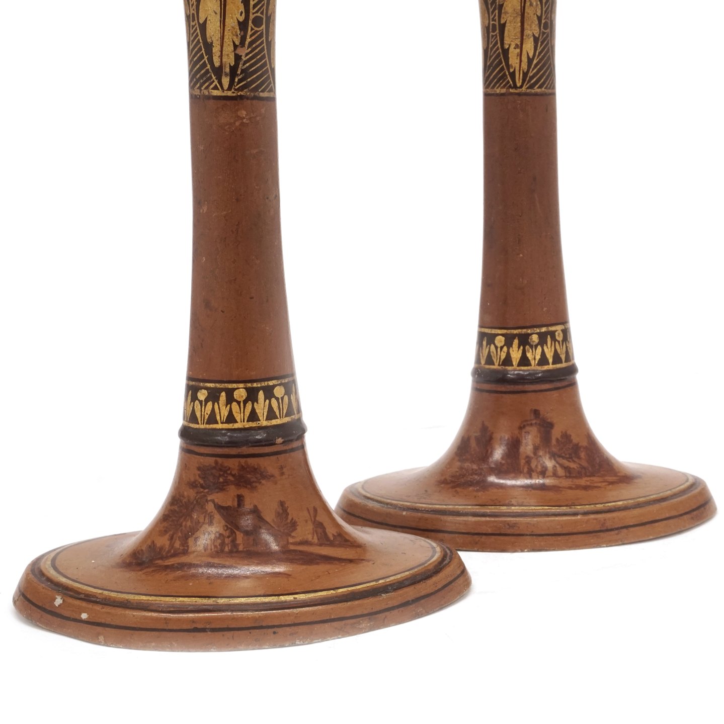 Pair of candlesticks with landscape motives. Germany circa 1840. H: 19,5cm