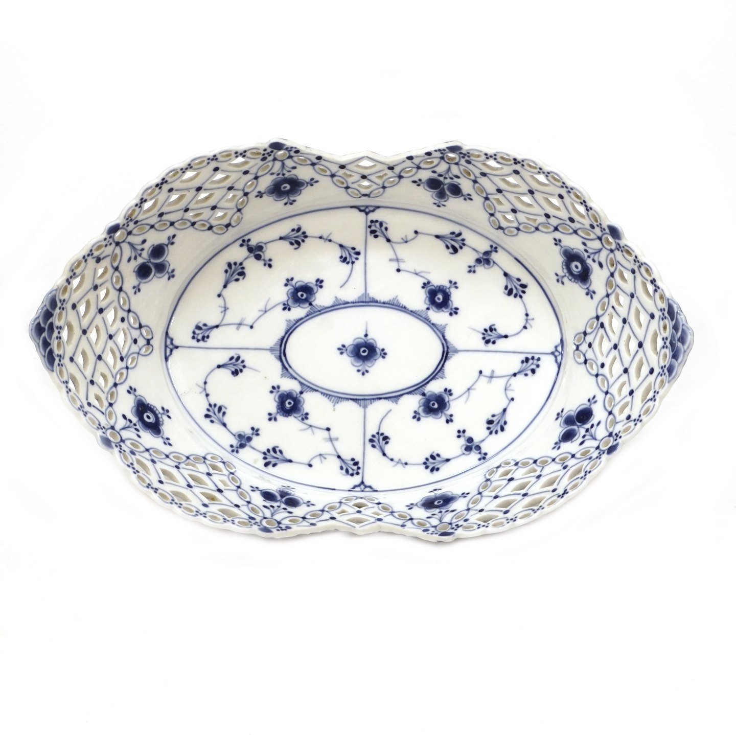 Royal Copenhagen blue fluted full lace jardinere 1002. H: 8,2cm. L: 31cm