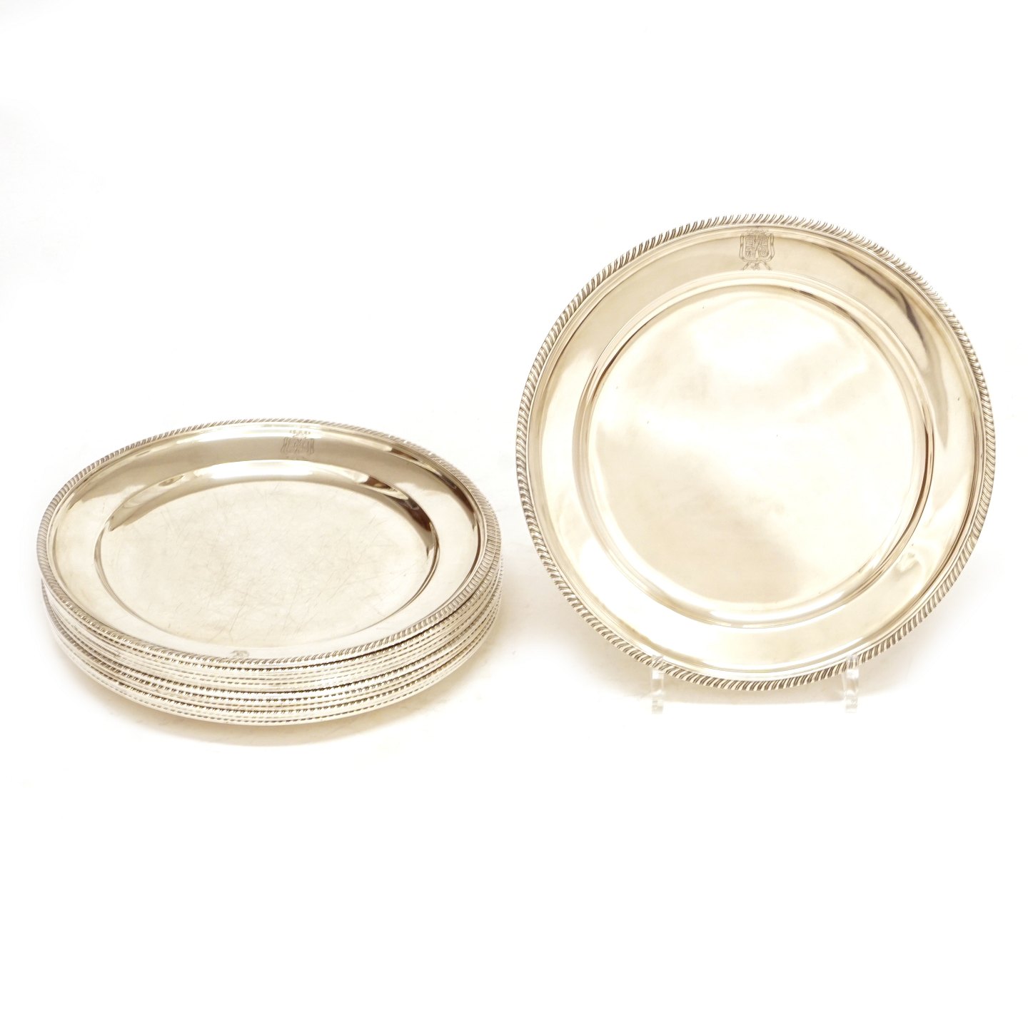 Set of 13 silver plates made by Nicolai Christensen, Copenhagen, 1829, for the wedding between Princess Caroline and Prince Ferdinand, Denmark