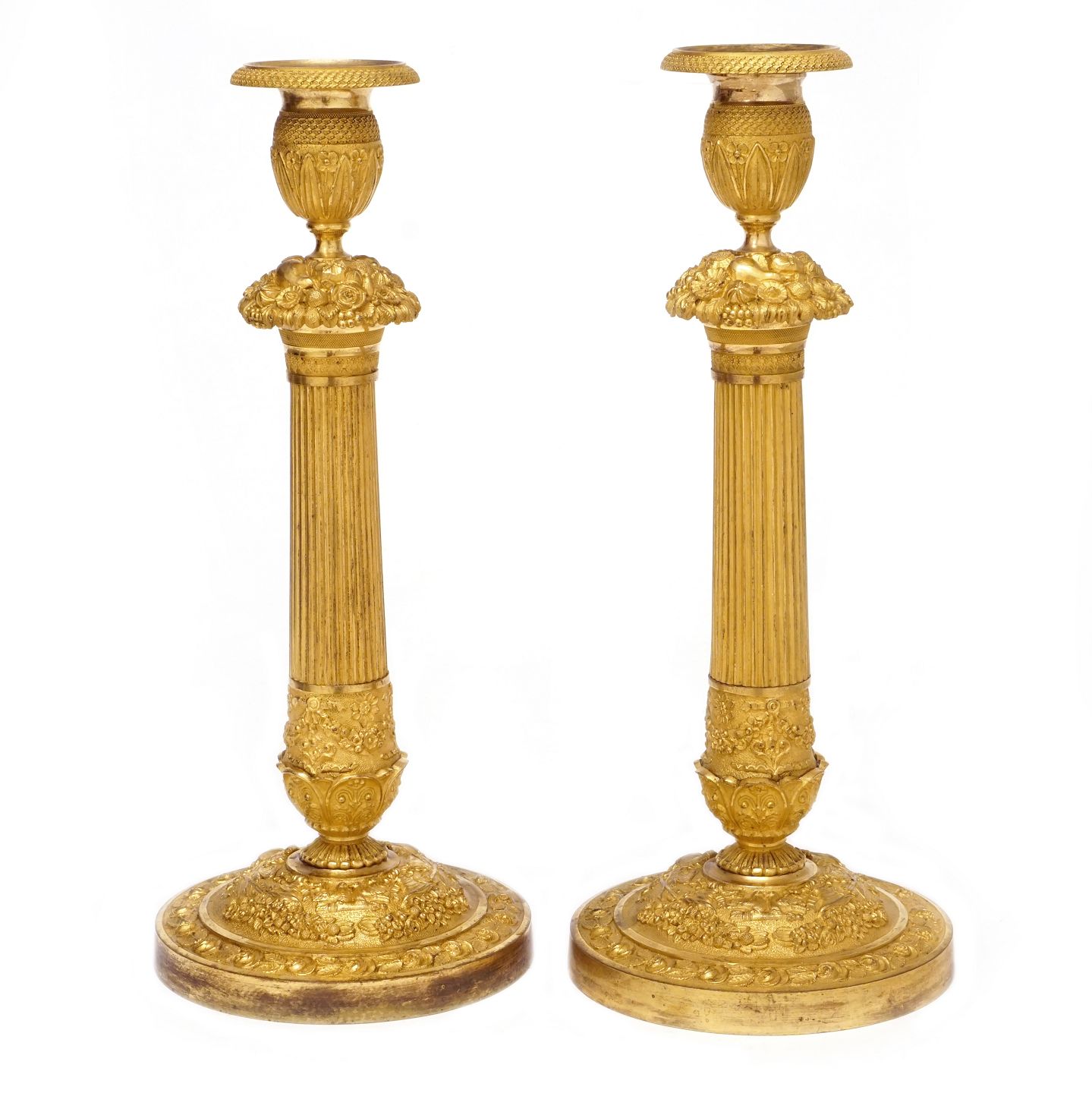 Pair of fire gilt Empire bronze candlesticks France circa 1820 H: 34cm Item number: 34006