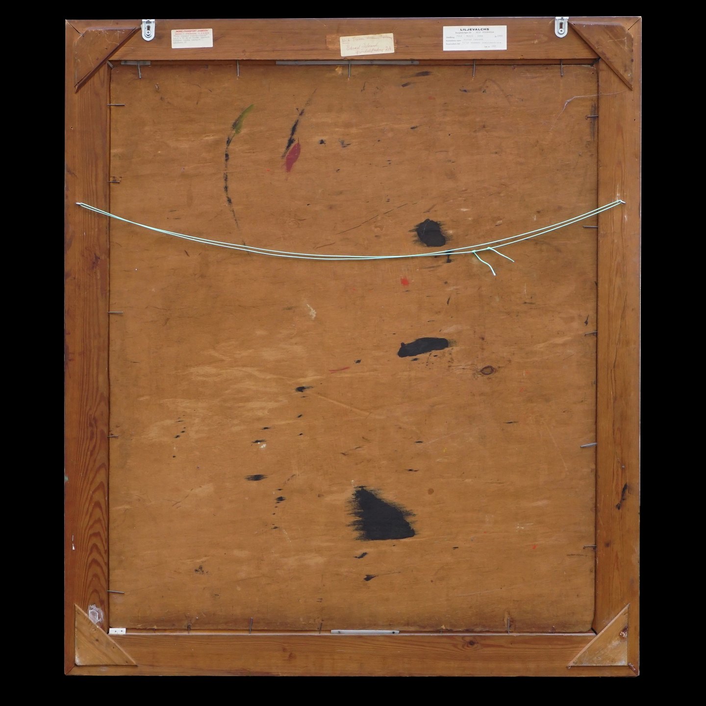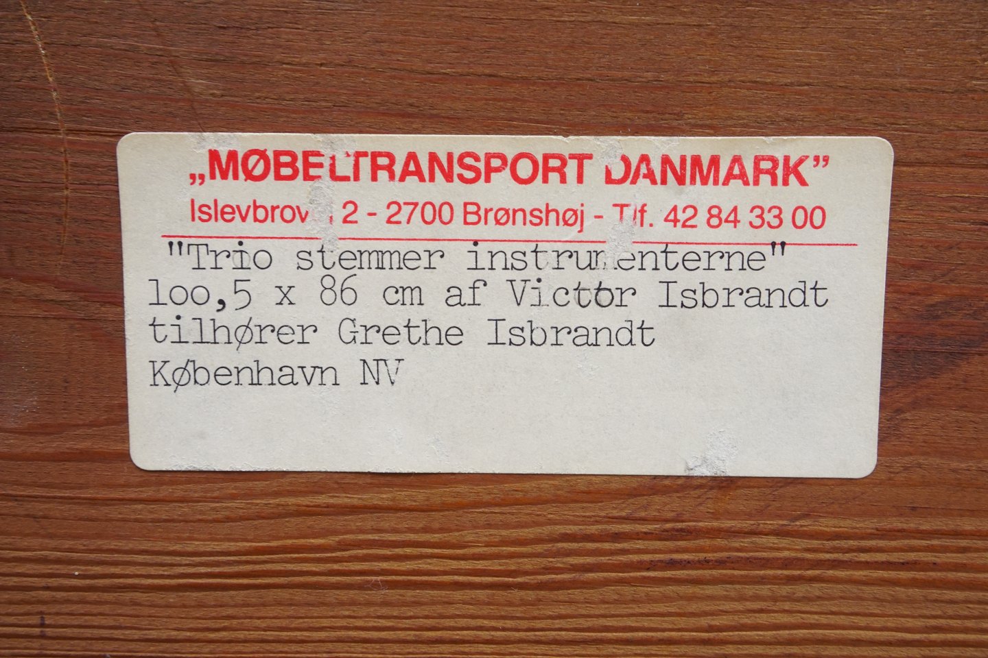 Victor Isbrand, 1897-1988, oil on plate. Cubism composition with three musicians. Signed and dated 1918. Exhibited and depicted. Visible size: 105x88cm. With frame: 121x106cm
