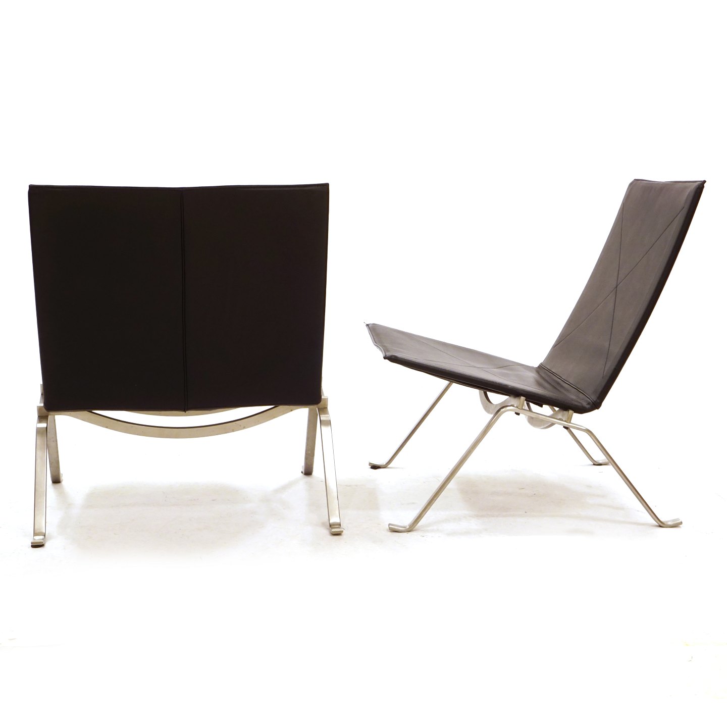 Et par Poul Kjærholm PK22 med sort læder og stål stel