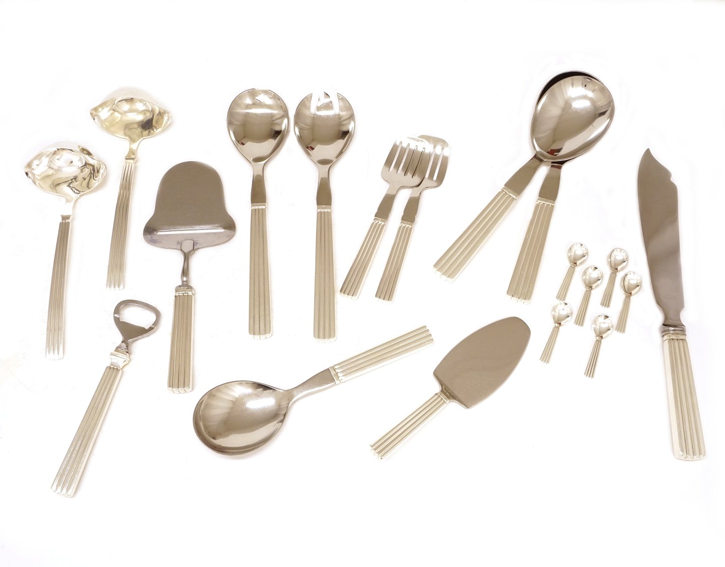 Sigvard Bernadotte for Georg Jensen Bernadotte sterlingsølv bestik til 12 personer med tagtøj bestående af: