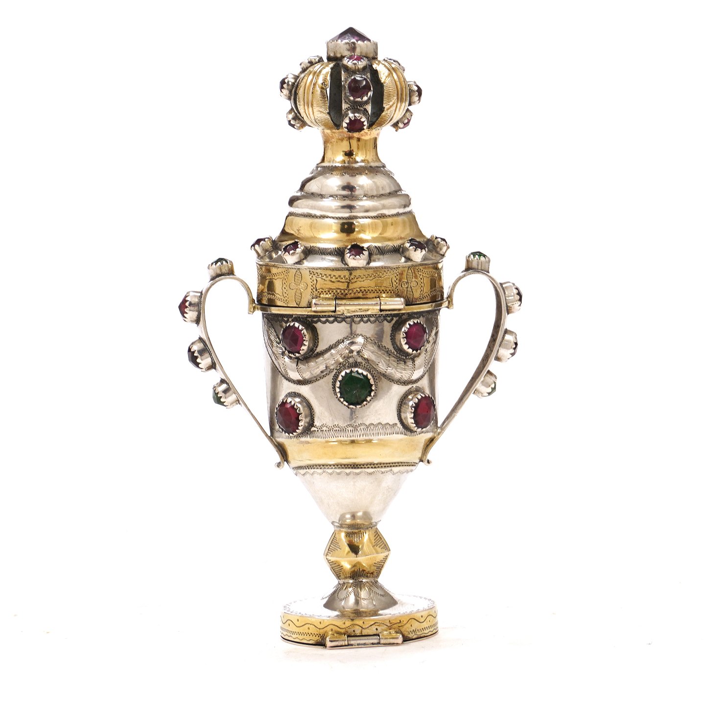 Hovedvandsæg i delvist forgyldt sølv af Thomas Jensen den yngre, Aabenraa, 1851-53